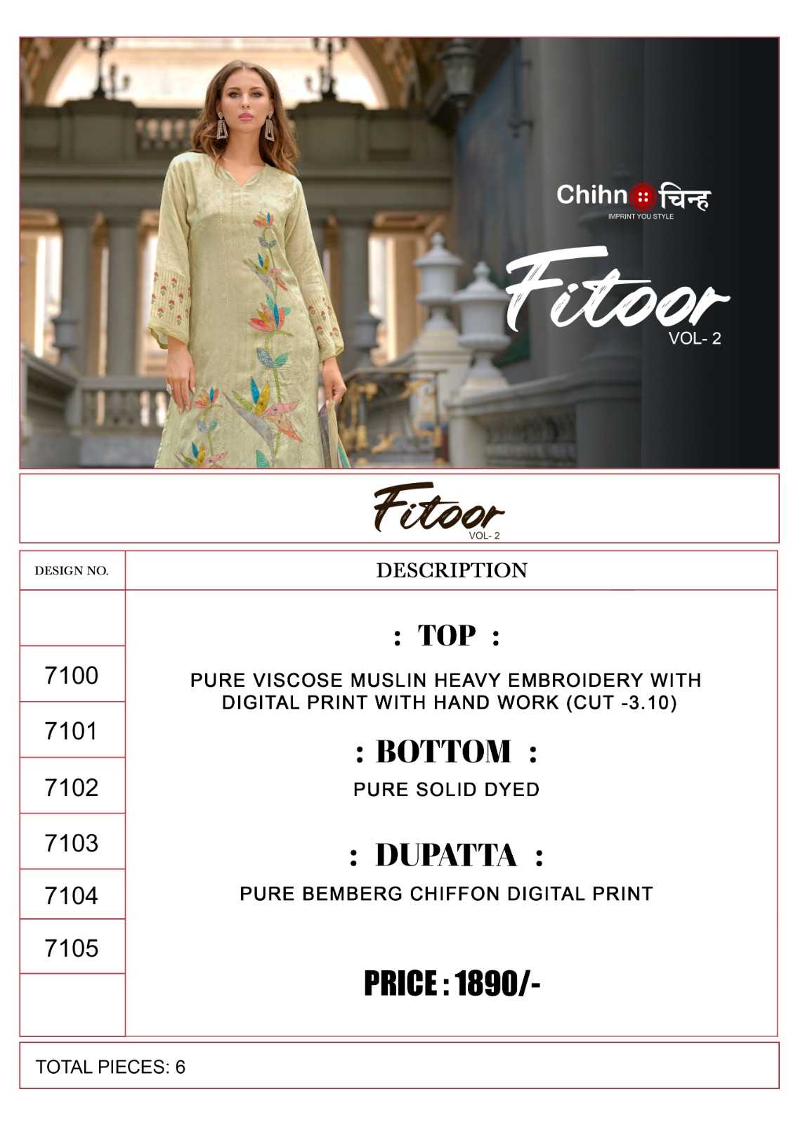 CHIHN Presents Latest Collection Launched on 06-04-2024. Presenting Beautiful collection of 6 PCS with Unstitched .