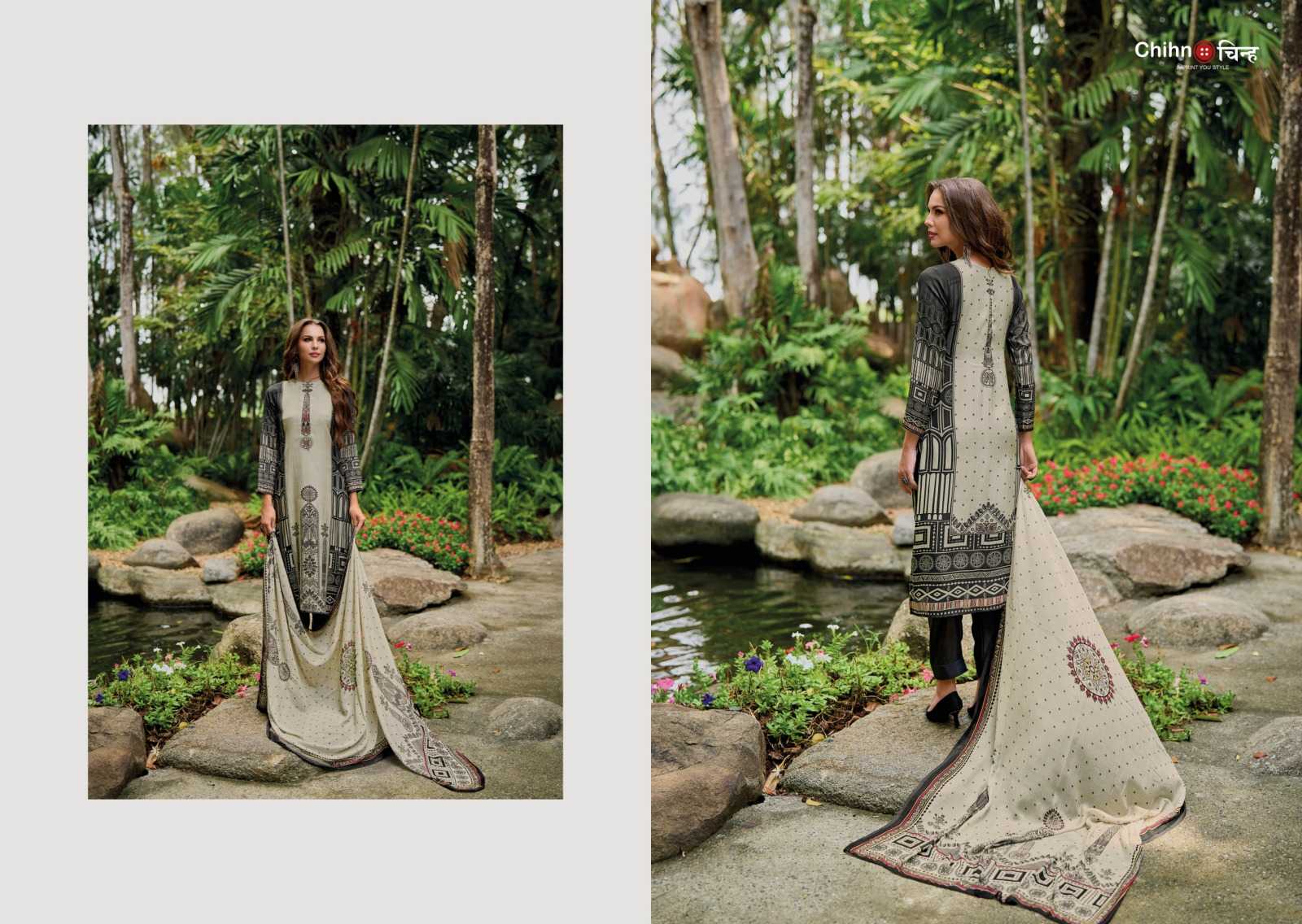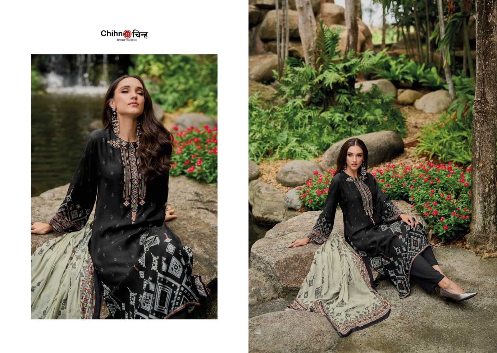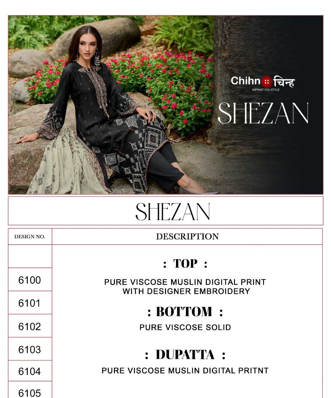 CHIHN Top - PURE VISCOSE MUSLIN DIGITAL PRINT WITH DESIGNER EMBROIDERY Bottom - PURE VISCOSE SOLID Dupata - PURE VISCOSE MUSLIN DIGITAL PRINT Rate-1495/- |