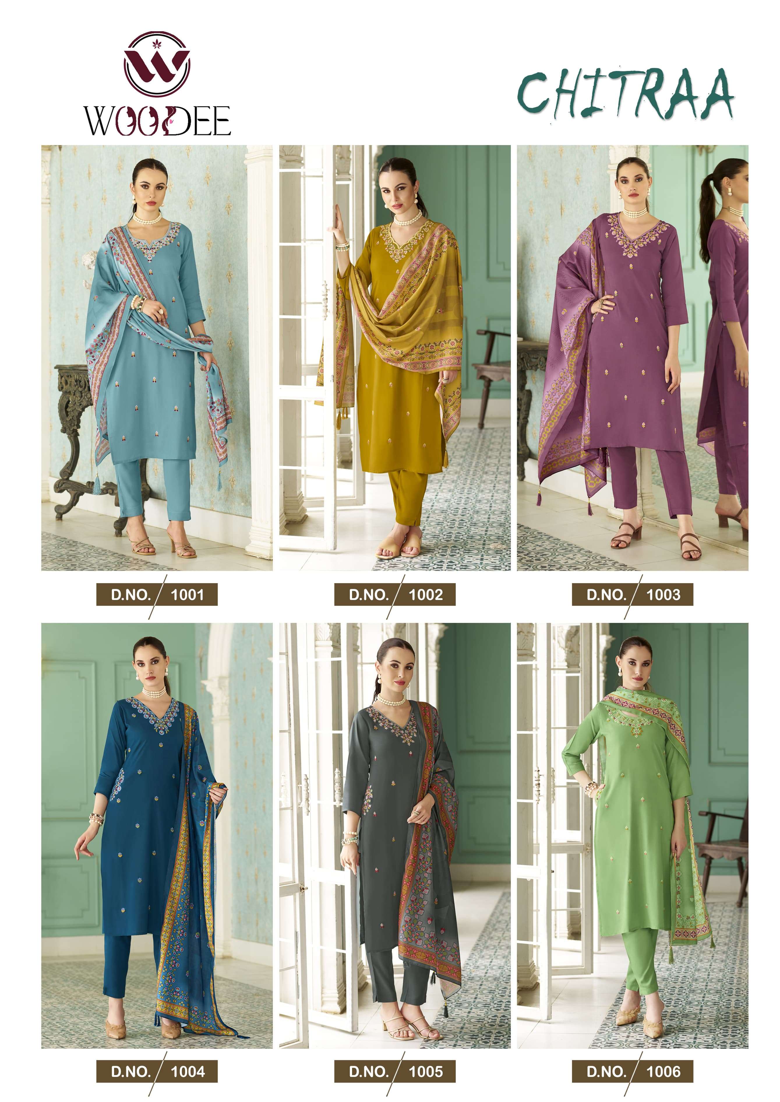 CHITRAA 💃 3 PCS CONCEPT Brand : WOODEE 🥋 : Top(two side pockets)+plazzo pant Premium quality Rayon 🧵: Thread work with hand work 💼 : S(36),M(38),L(40), XL(42), XXL(44),3XL(46) 👗: Length top :45" ✍️ BOOK YOUR ORDER FAST |