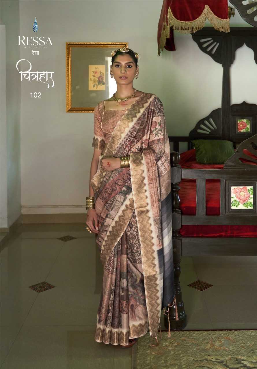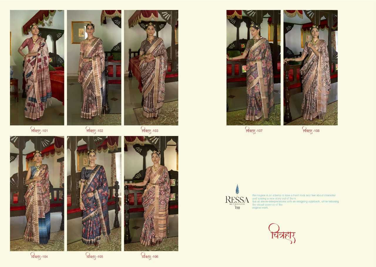 🇮🇳 Premium saree collection by Ressa Launched new catalogue - Chitrahar Available at 8 varied designs RATE - ₹895/- |