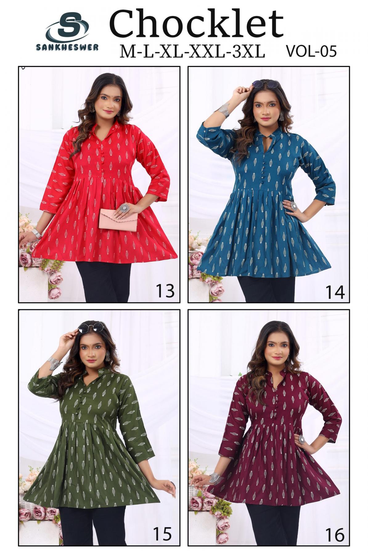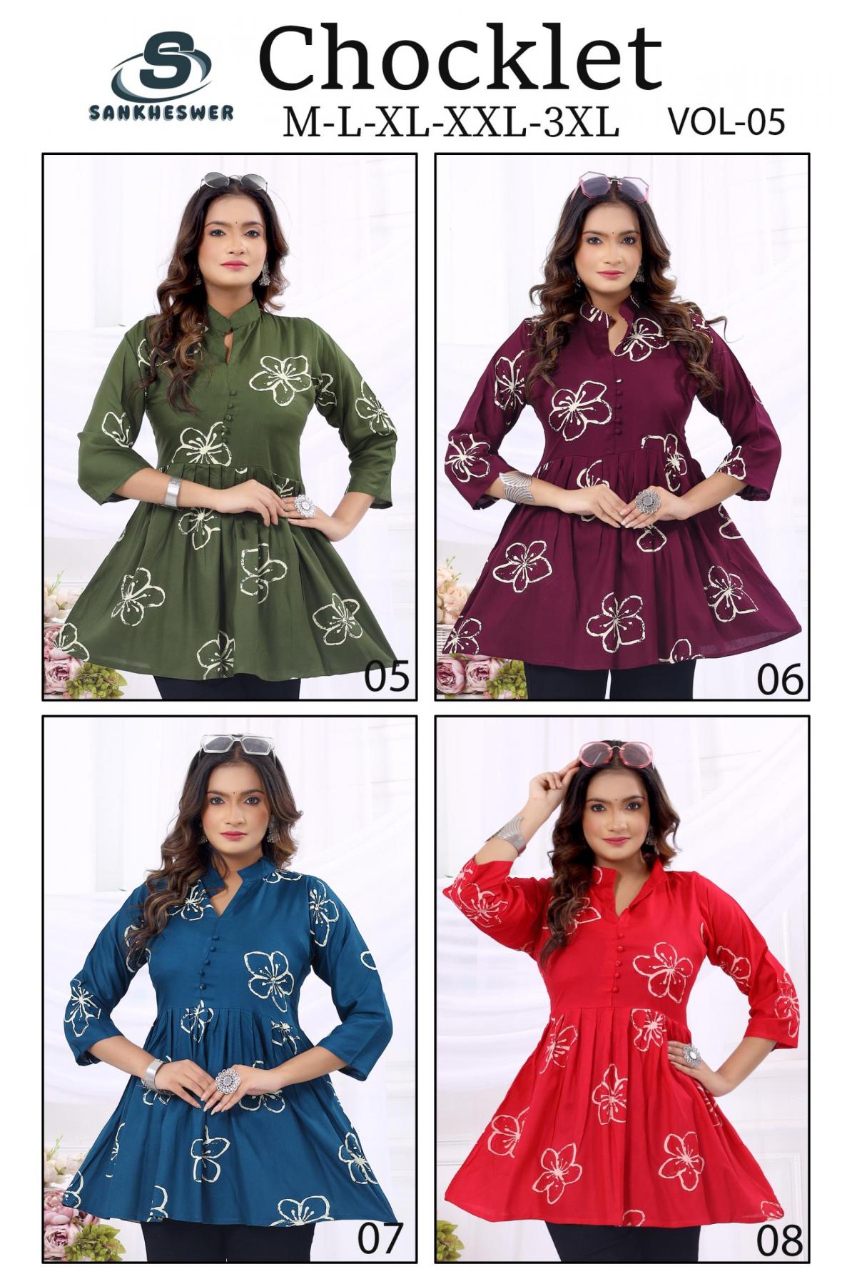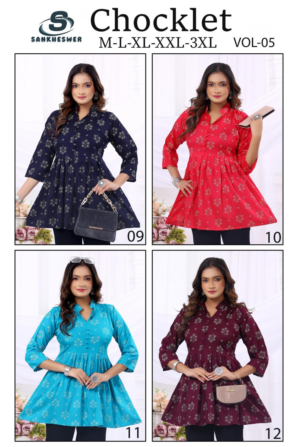 chocklet vol 5 by sankheswer rayon fully stitch unique combo short kurti