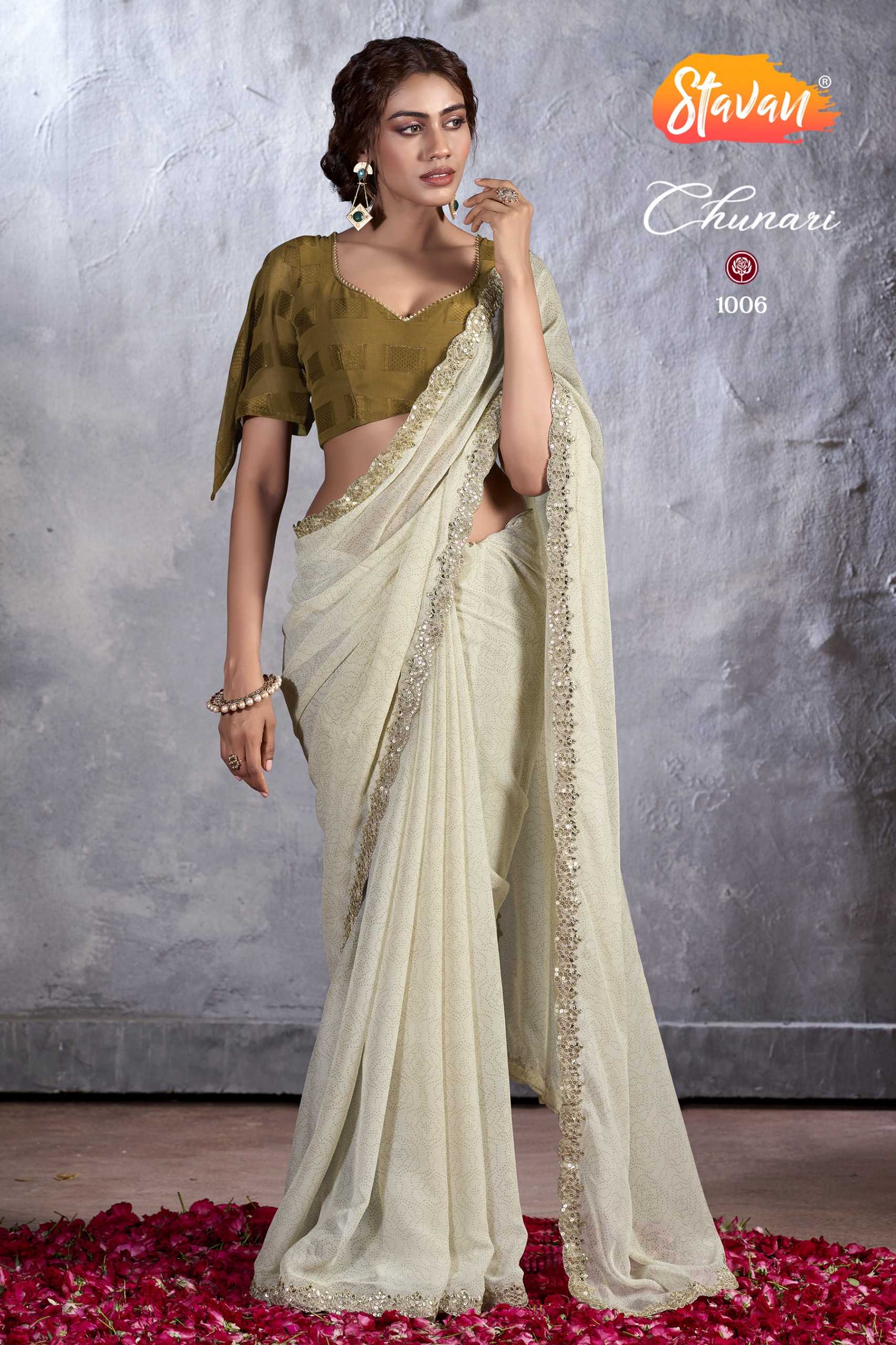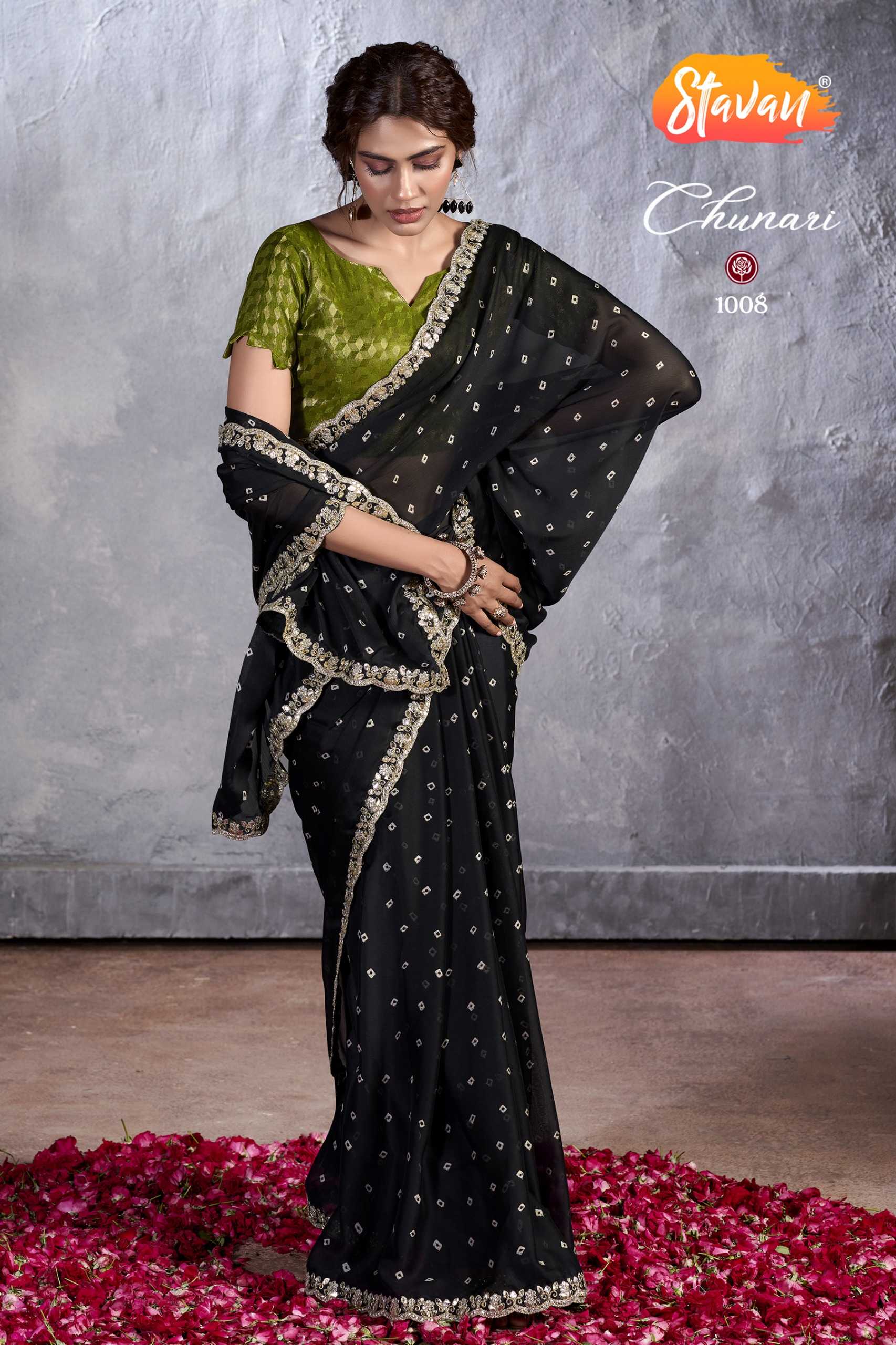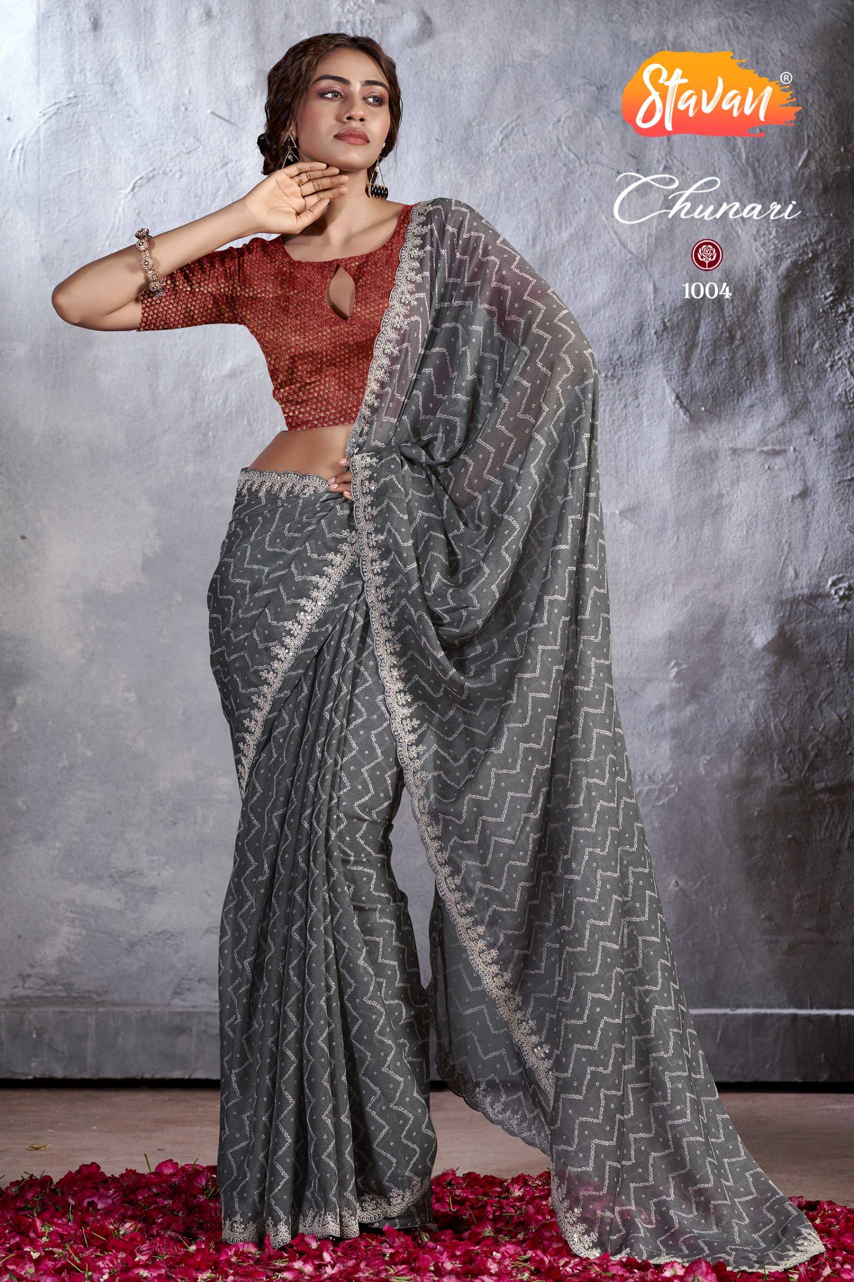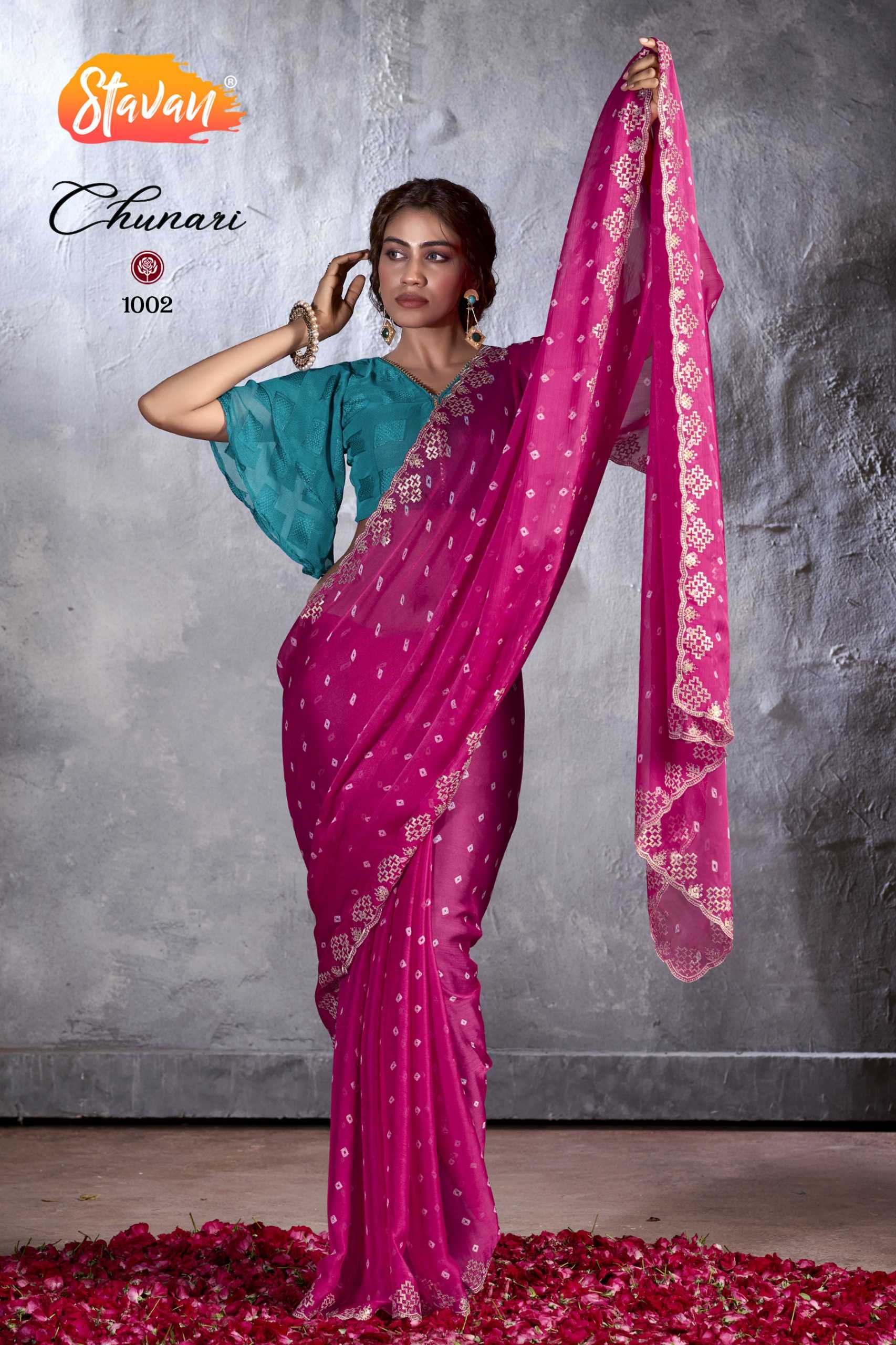 chunari by stavan unique colour chiffon cutwork embroidery work saree