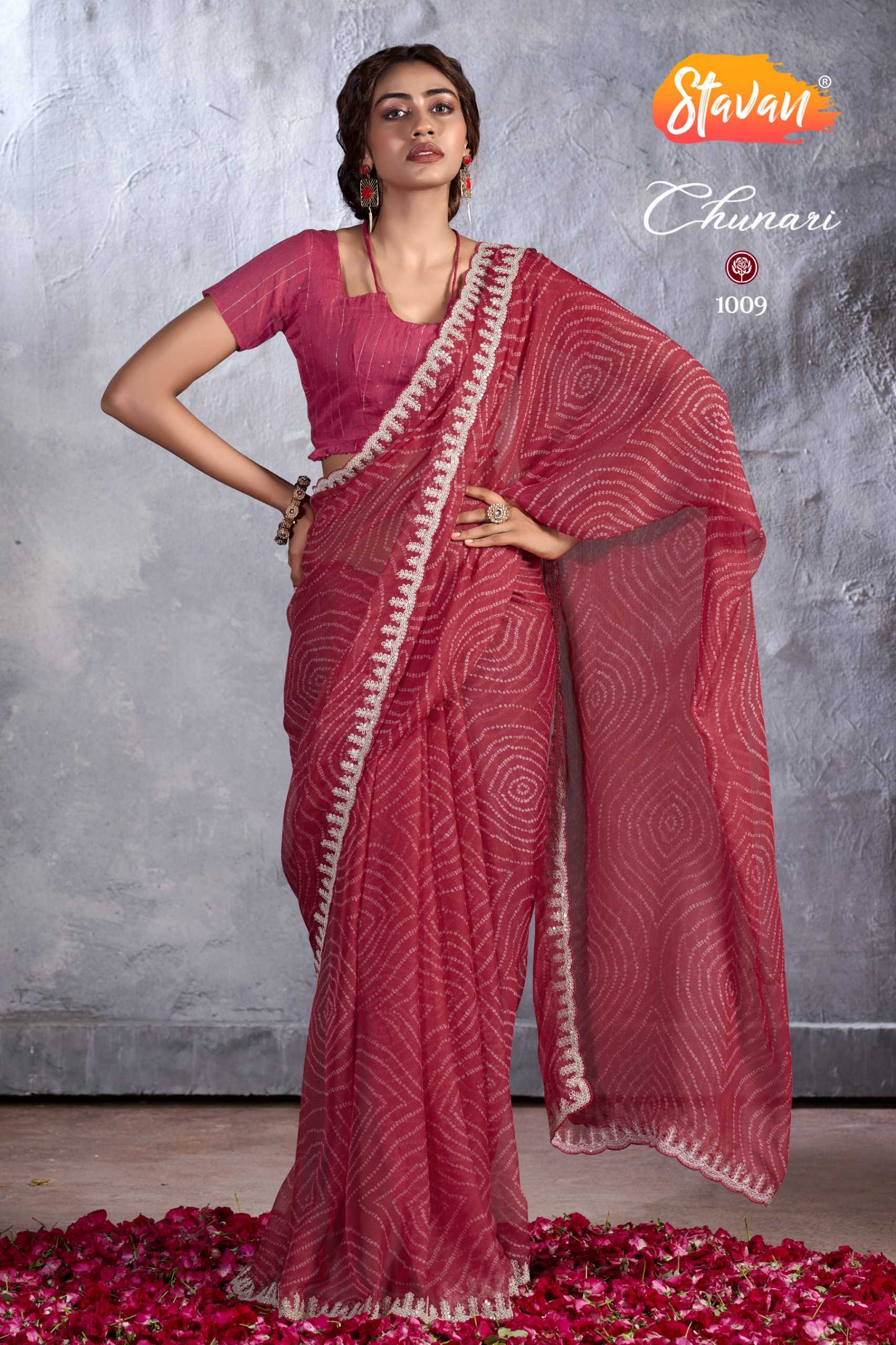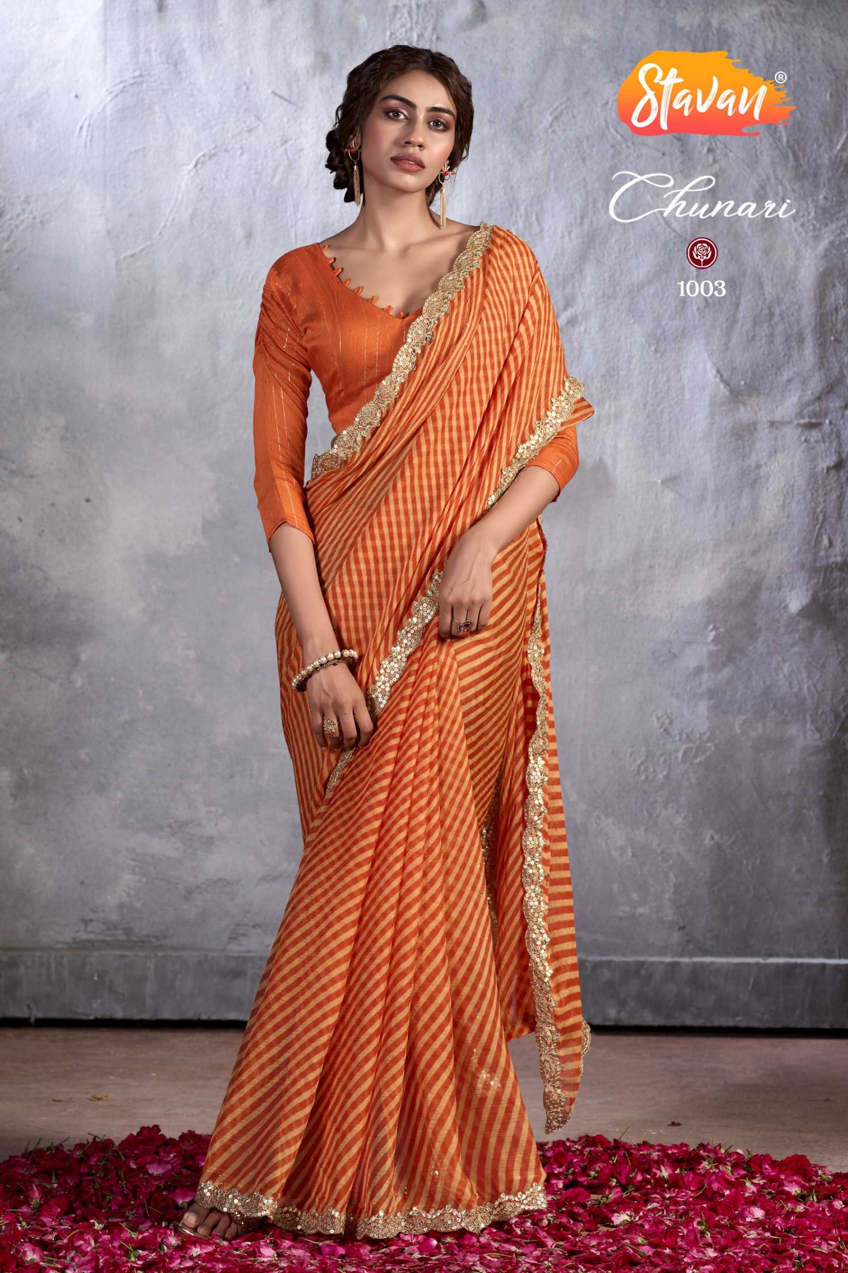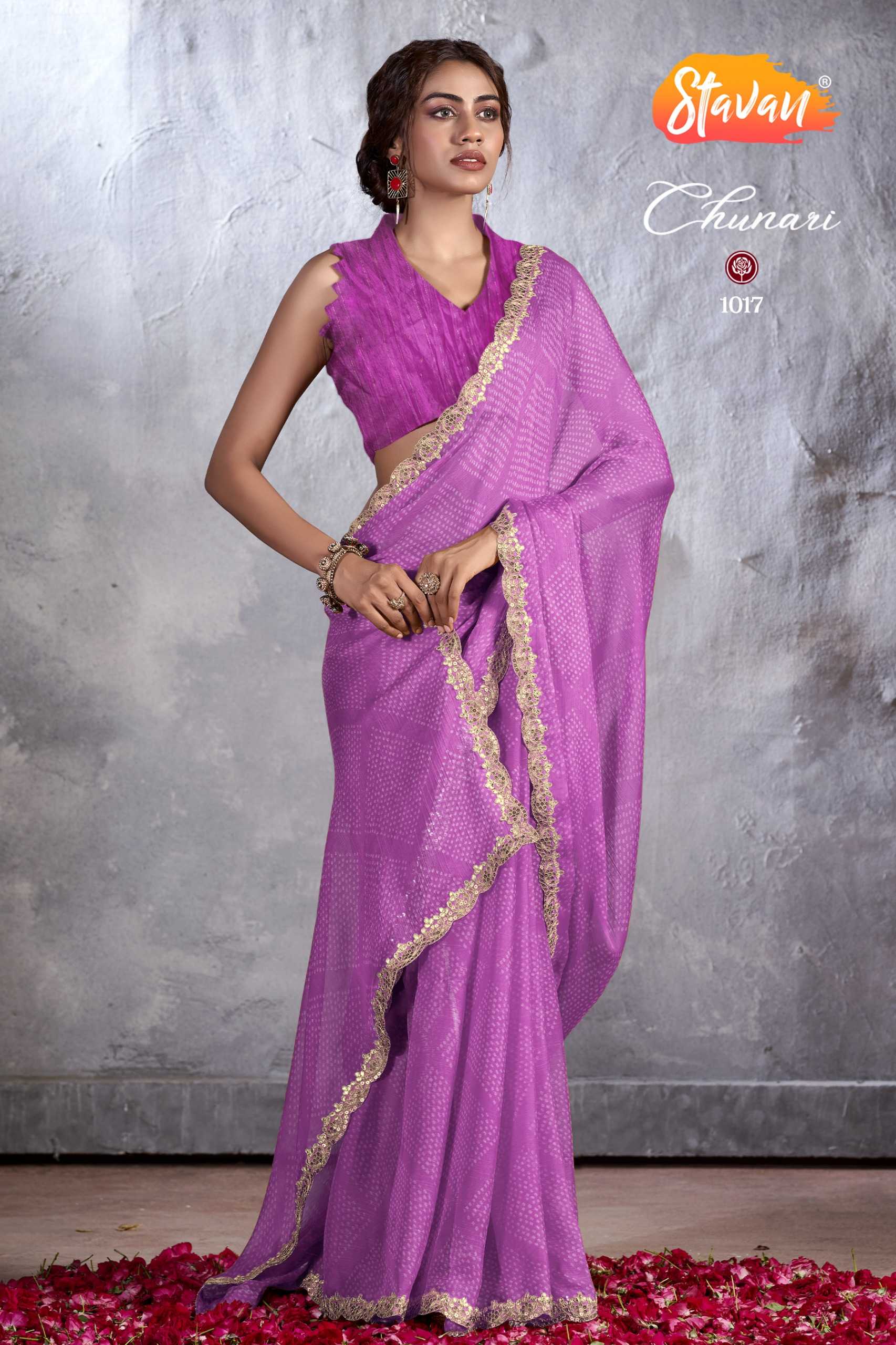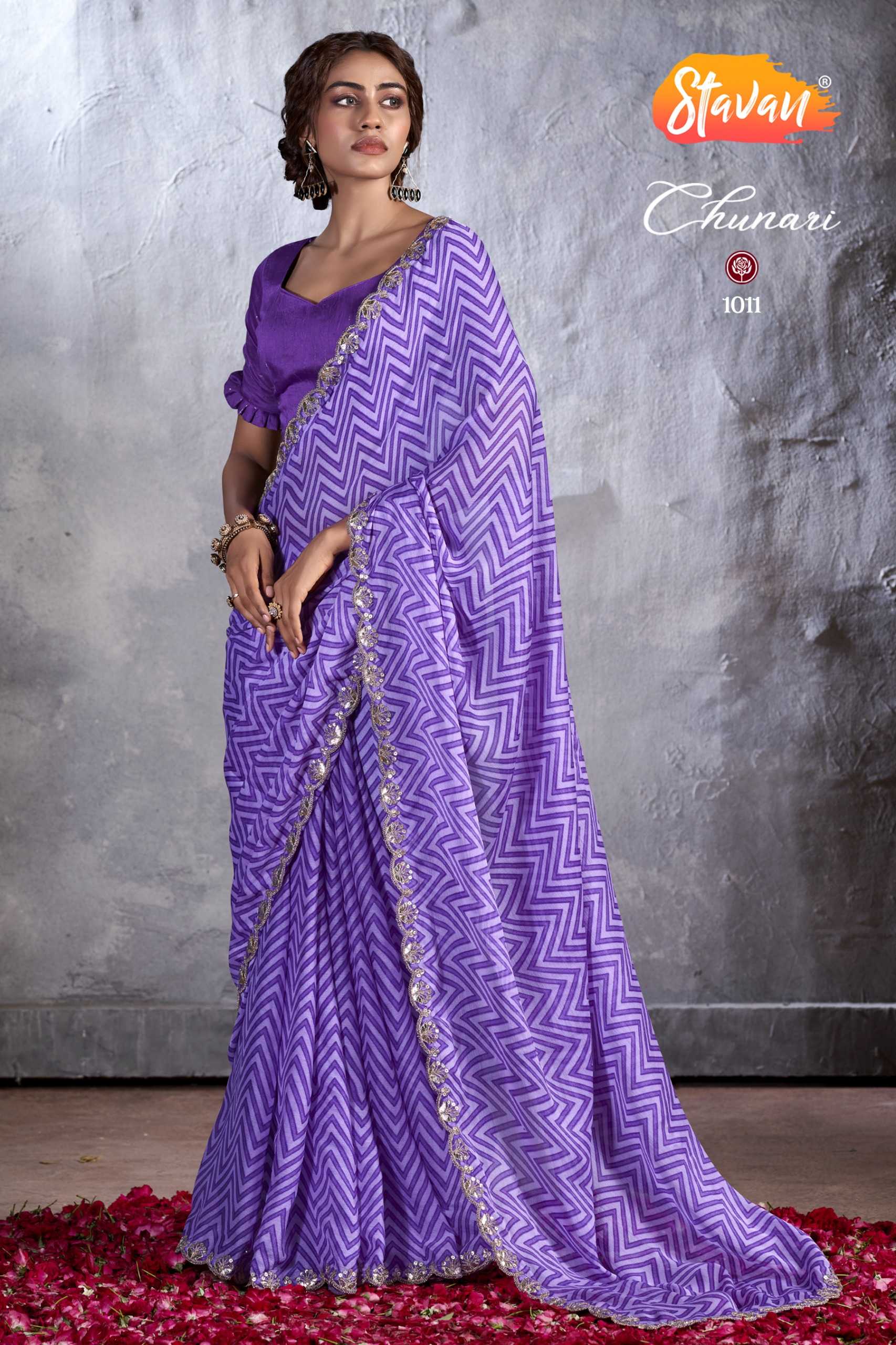 chunari by stavan unique colour chiffon cutwork embroidery work saree