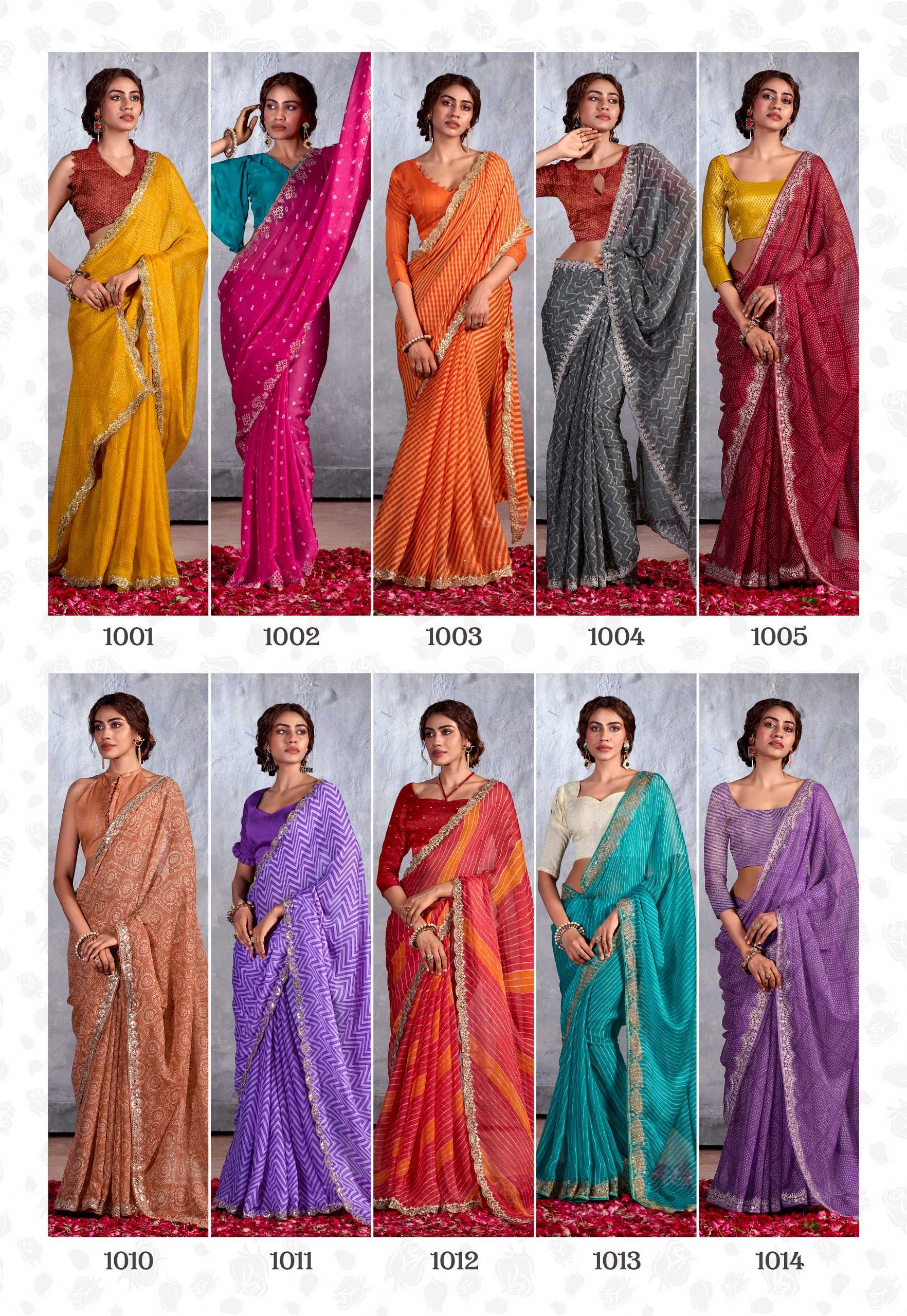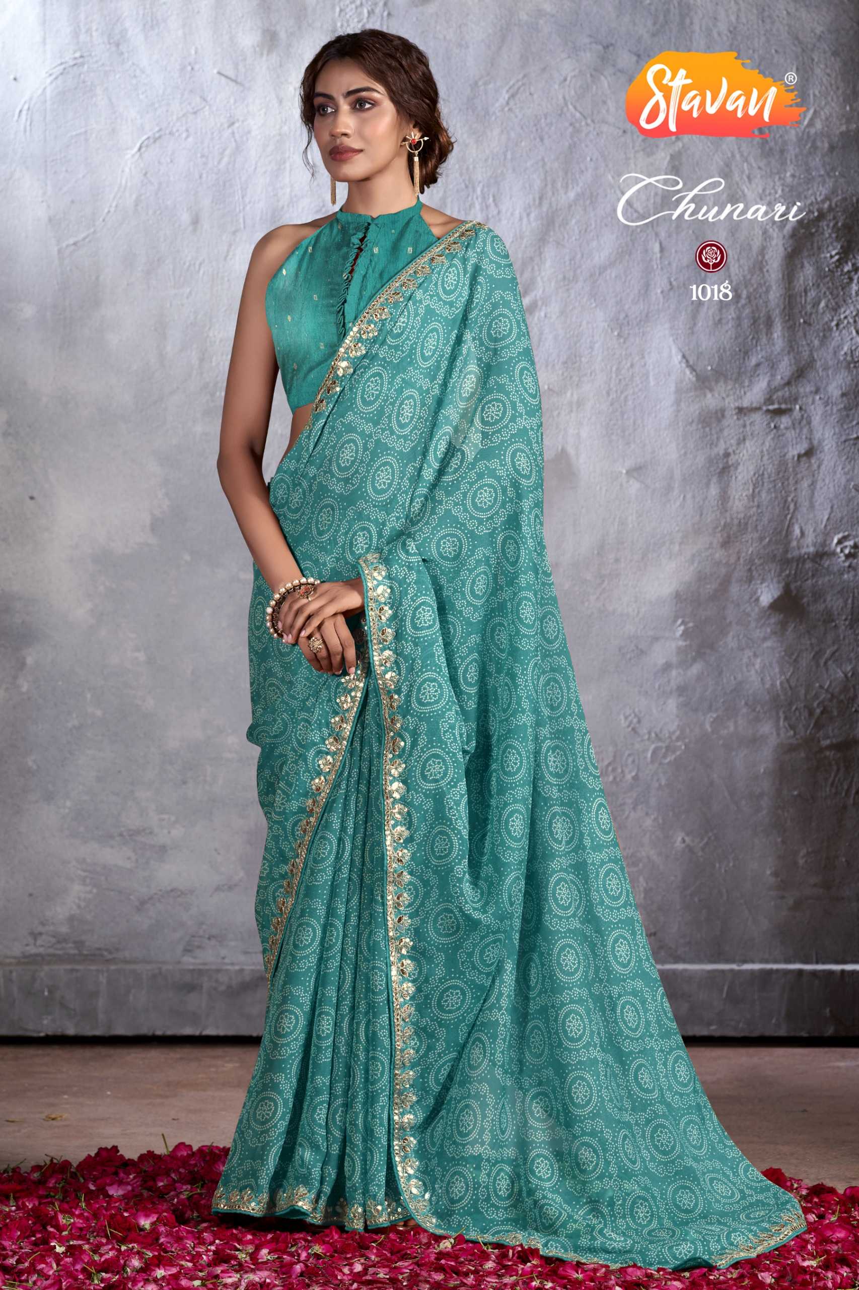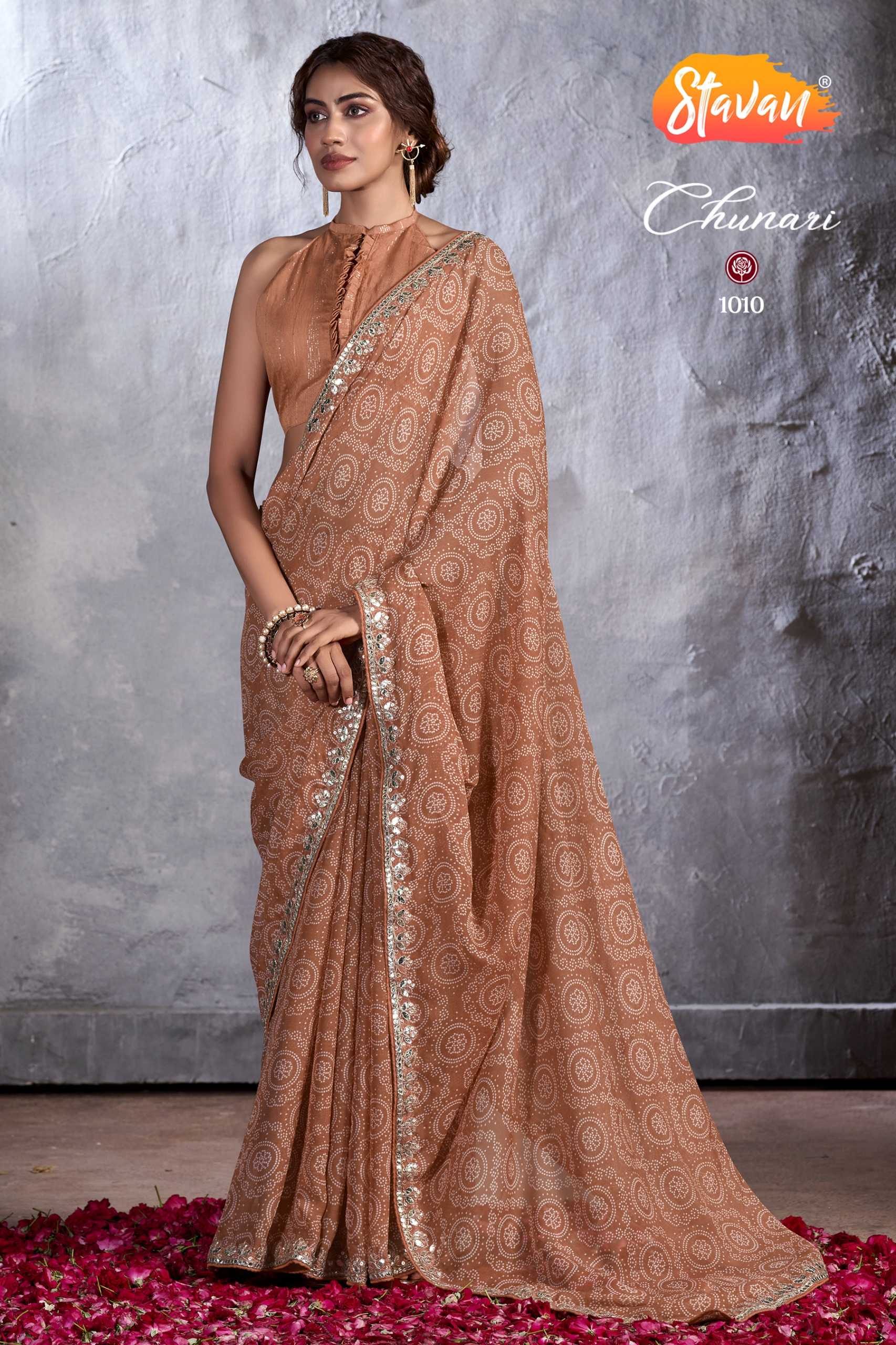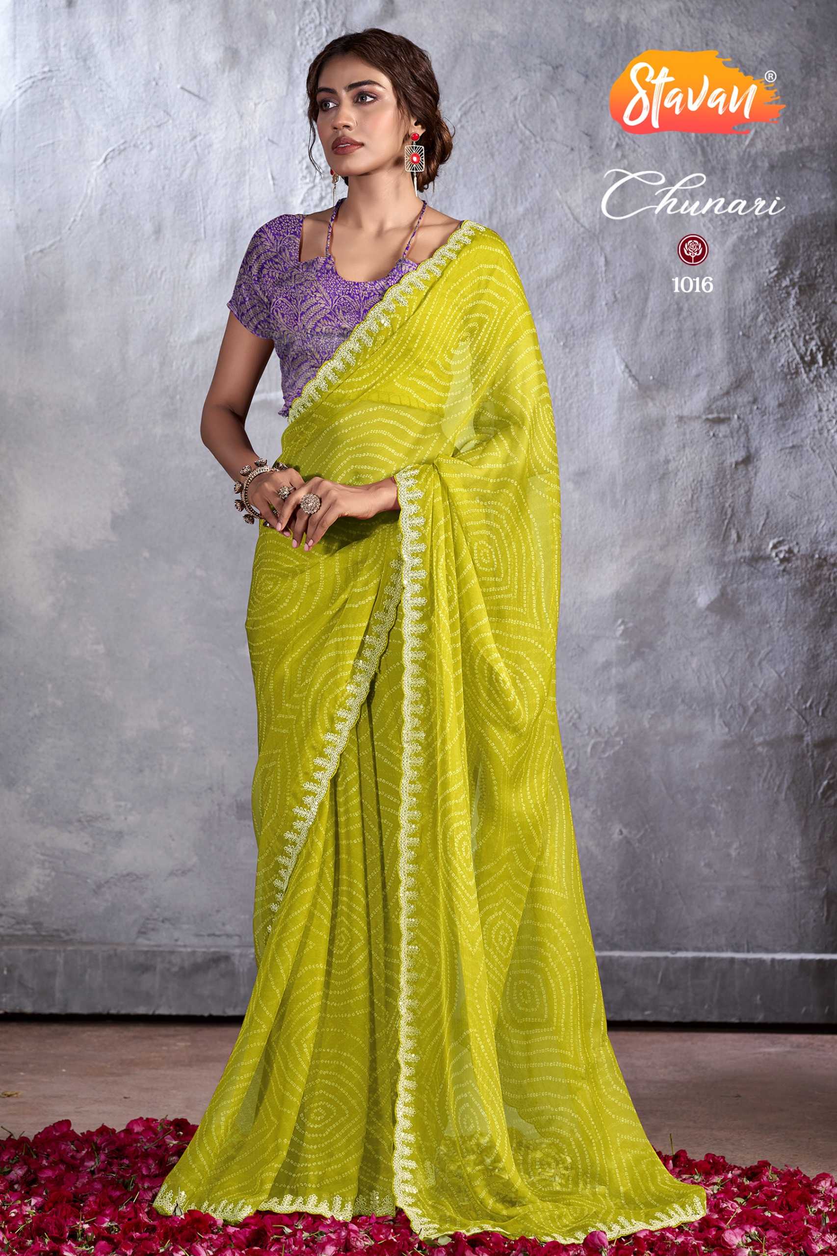 chunari by stavan unique colour chiffon cutwork embroidery work saree