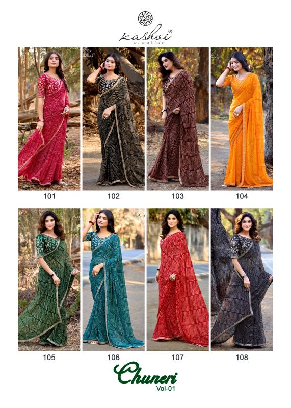chuneri vol 1 by kashvi creation mono georgette daily wear fancy sarees