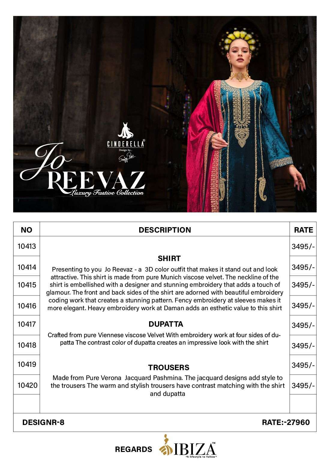 Trousers:- DESIGNR:-8 RATE:-3495 RAGARDS |