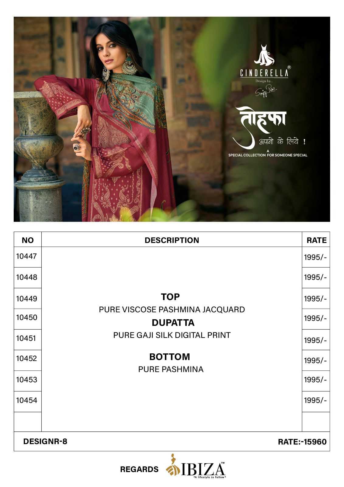 🙏🙏CINDERELLA🙏🙏 NEW SERIES ✌🏻TOHAPHA✌🏻 👊Fabric Details👊 *👗Top:-PURE VISCOSE PASHMINA JACQUARD * BOTTOM:PURE PASHMINA 🔻Designs:- 8 PCS. Rate:-1995 Regards |