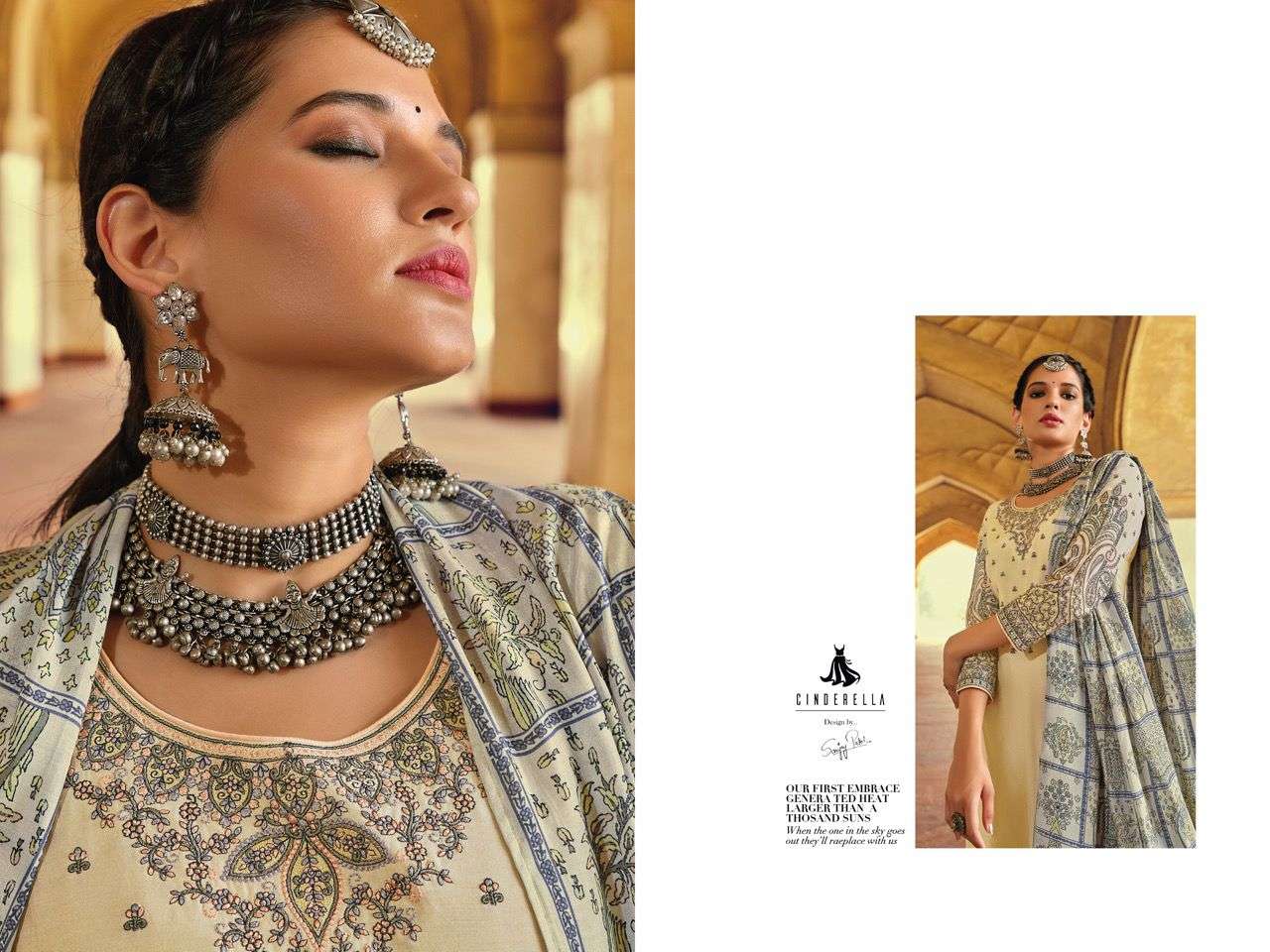 🙏🙏🙏CINDERELLA🙏🙏🙏 NEW SERIES ✌🏻CHAND BIBI✌🏻 👊Fabric Details👊 *👗Top:-PURE MUSLIN NACK AND SLEEVES DELICATED EMBROIDERY WORK * *BOTTOM:PURE JAM SILK * 🔻Designs: 6 PCS |