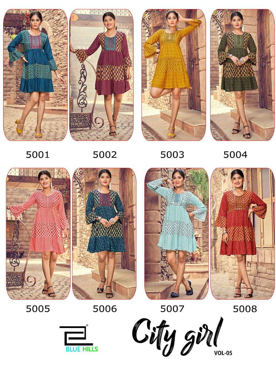 city girl vol 5 by blue hills rayon work tunic style short kurtis