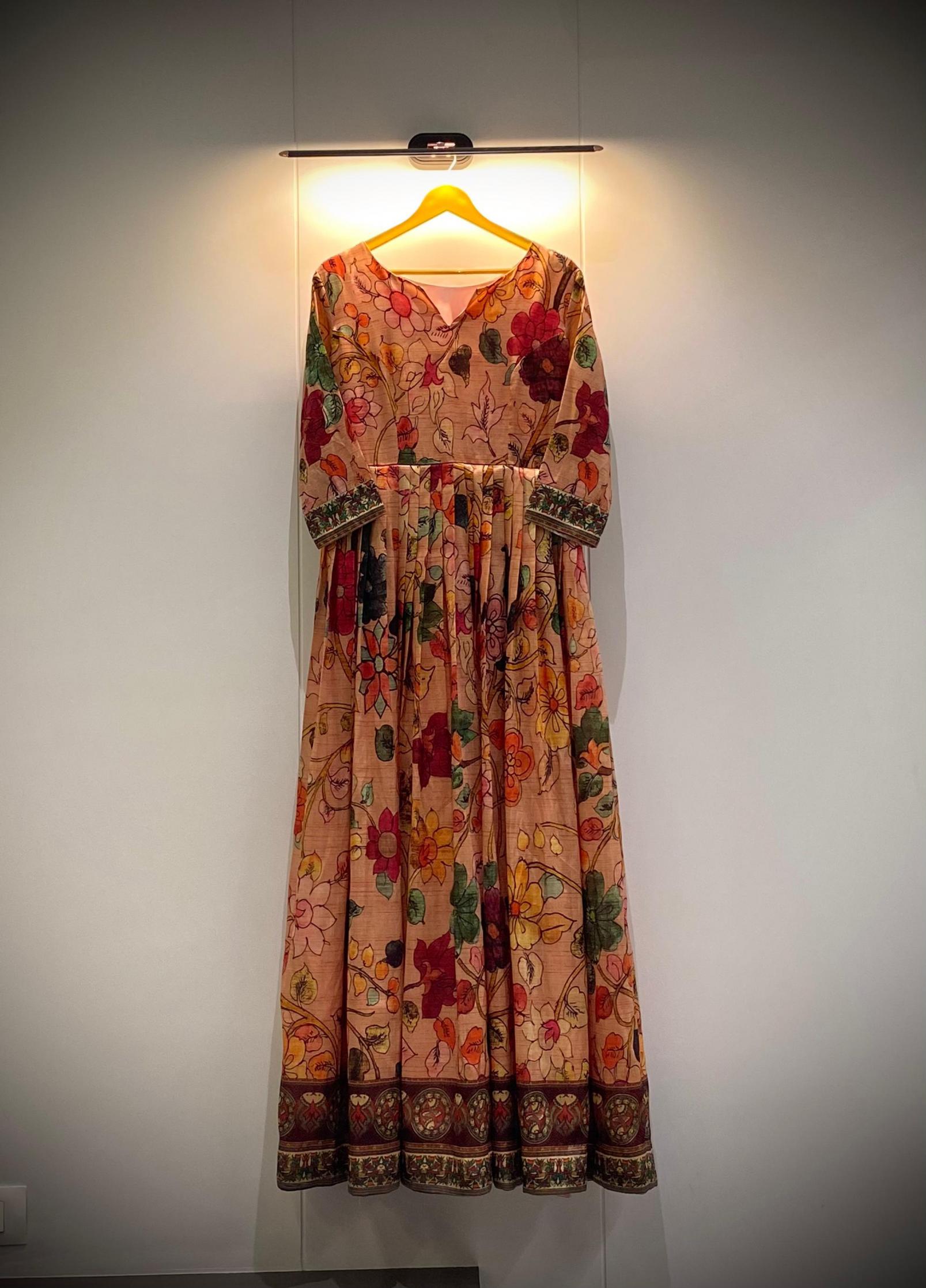 🌸New catalog🌸 Catalog : CK1 Elegant Kalamkari print gown with rich texture, beautiful flare, and a striking contrast panel for a graceful, timeless look. Gown fabric :- silk blend Price:- 1200/- Note :- Size customization is available as per requirements. |