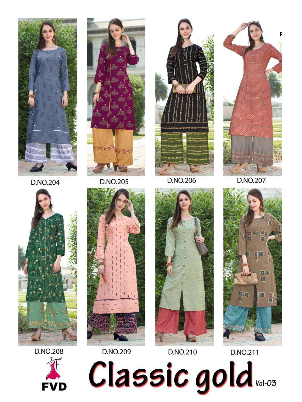 classic gold vol 3 by fvd rayon long top with designer plazzo