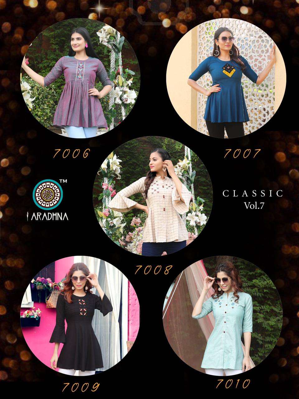 🦚 ARADHNA 🦚 🍂Catalog - CLASSIC VOL 7 Fabric : 🧥Size : S(36), M(38), L(40), XL(42), 2XL(44) 👜Designs : 10 💰Rate : 375 Rs + 5% GST |
