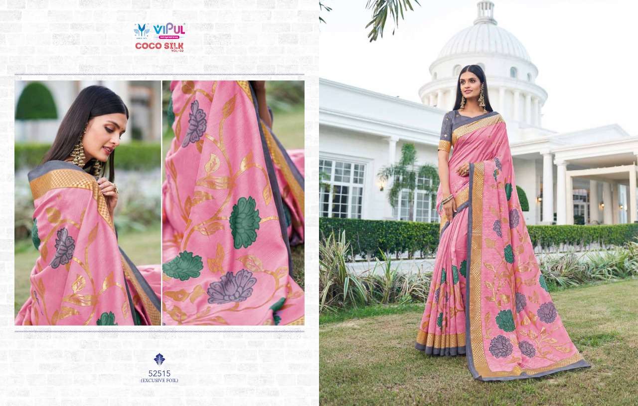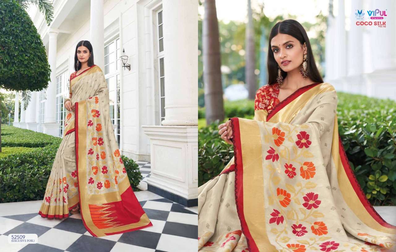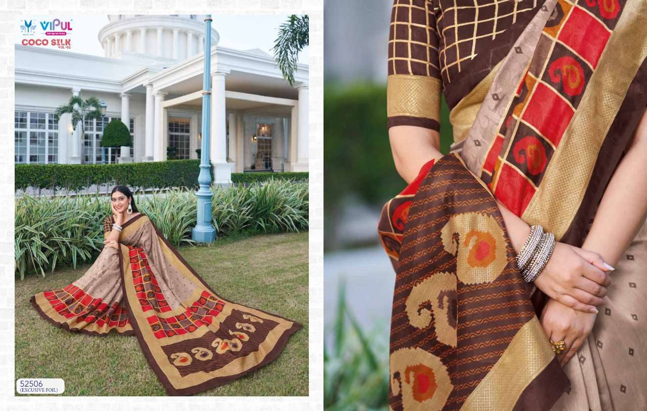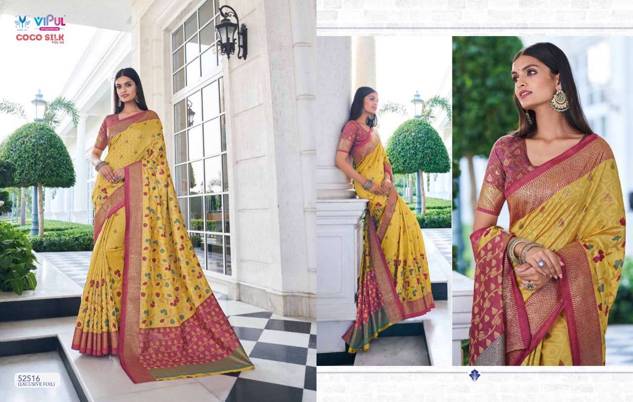 VIPUL COCO SILK VOL 2 The stylish Range in a gist,an exbaustive range of collection that bright back sobriety in style...! FABRIC- Jacquard Silk With Foil RATE-832/- |