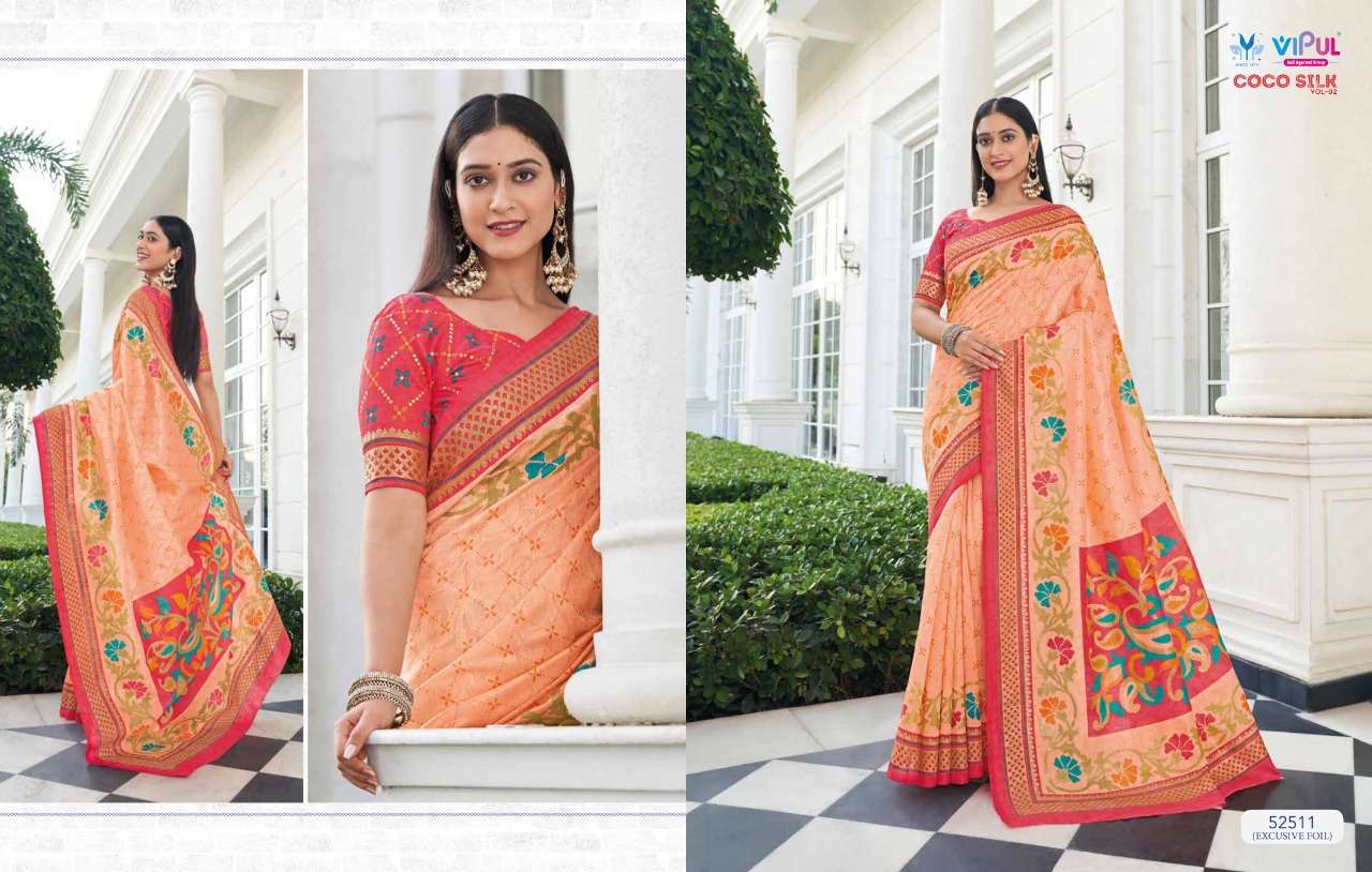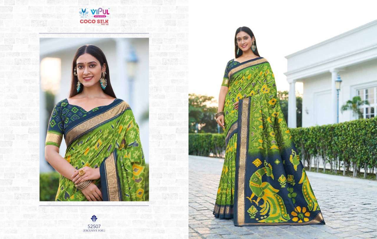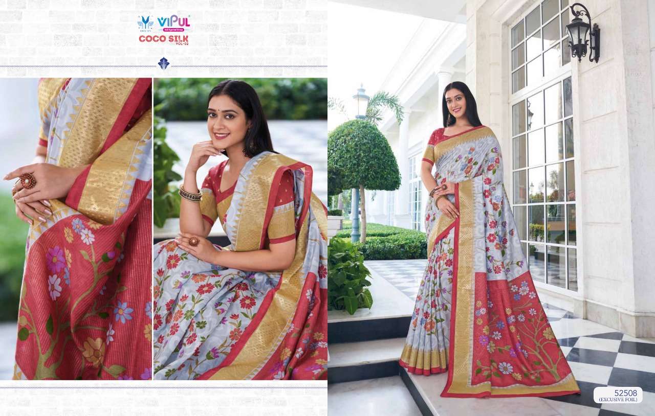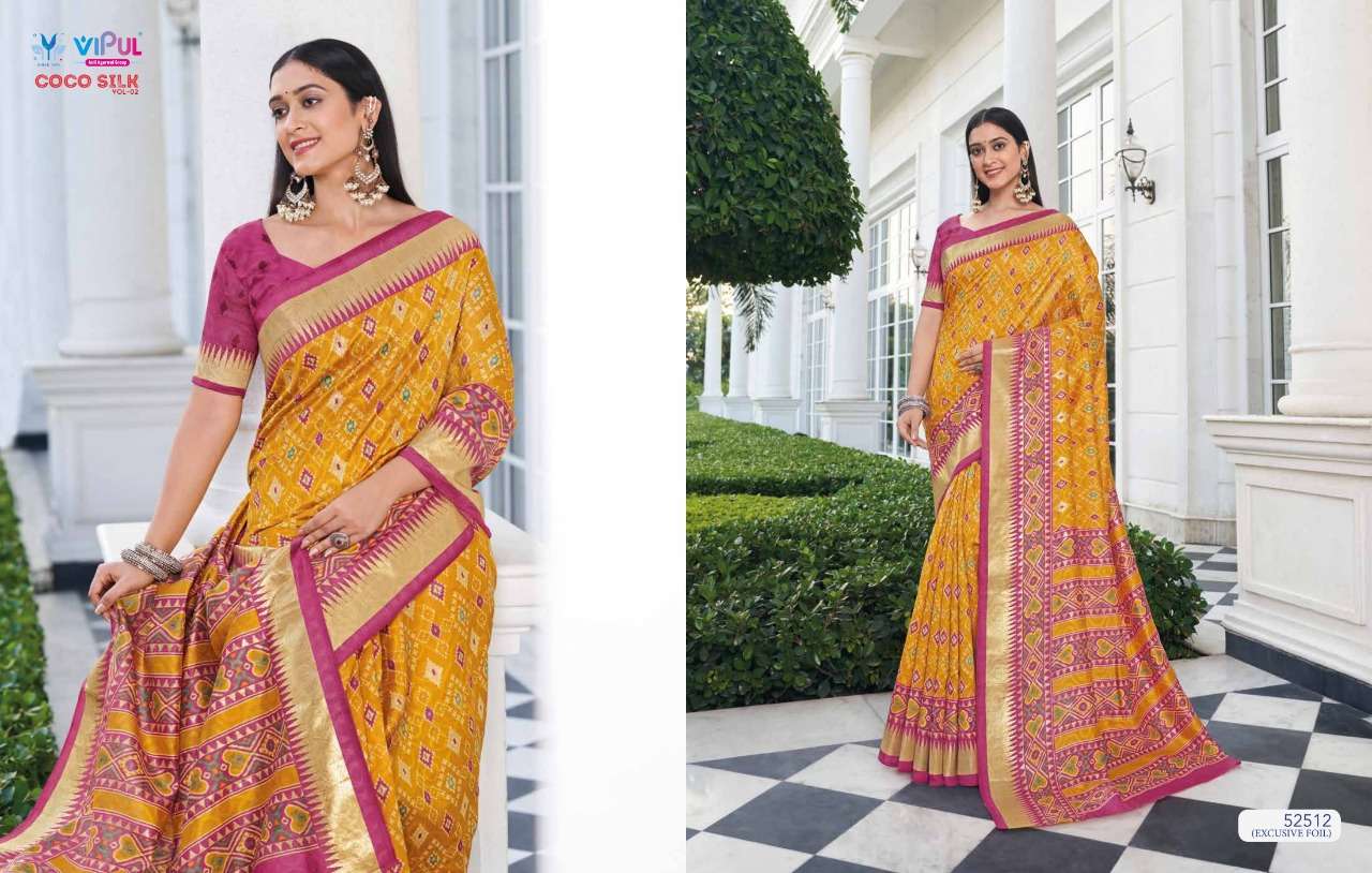 VIPUL COCO SILK VOL 2 The stylish Range in a gist,an exbaustive range of collection that bright back sobriety in style...! FABRIC- Jacquard Silk With Foil RATE-832/- |
