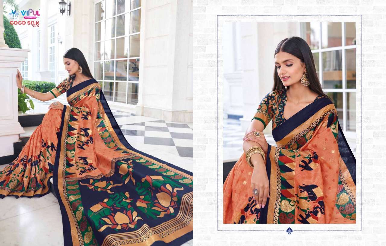 coco silk vol 2 by vipul jacquard silk designer fancy saree