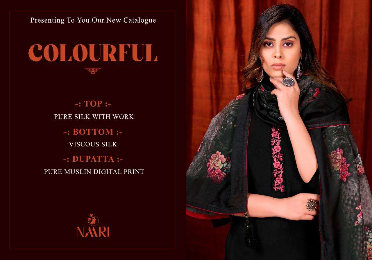 colourful by naari silk embroidery fancy dress materials