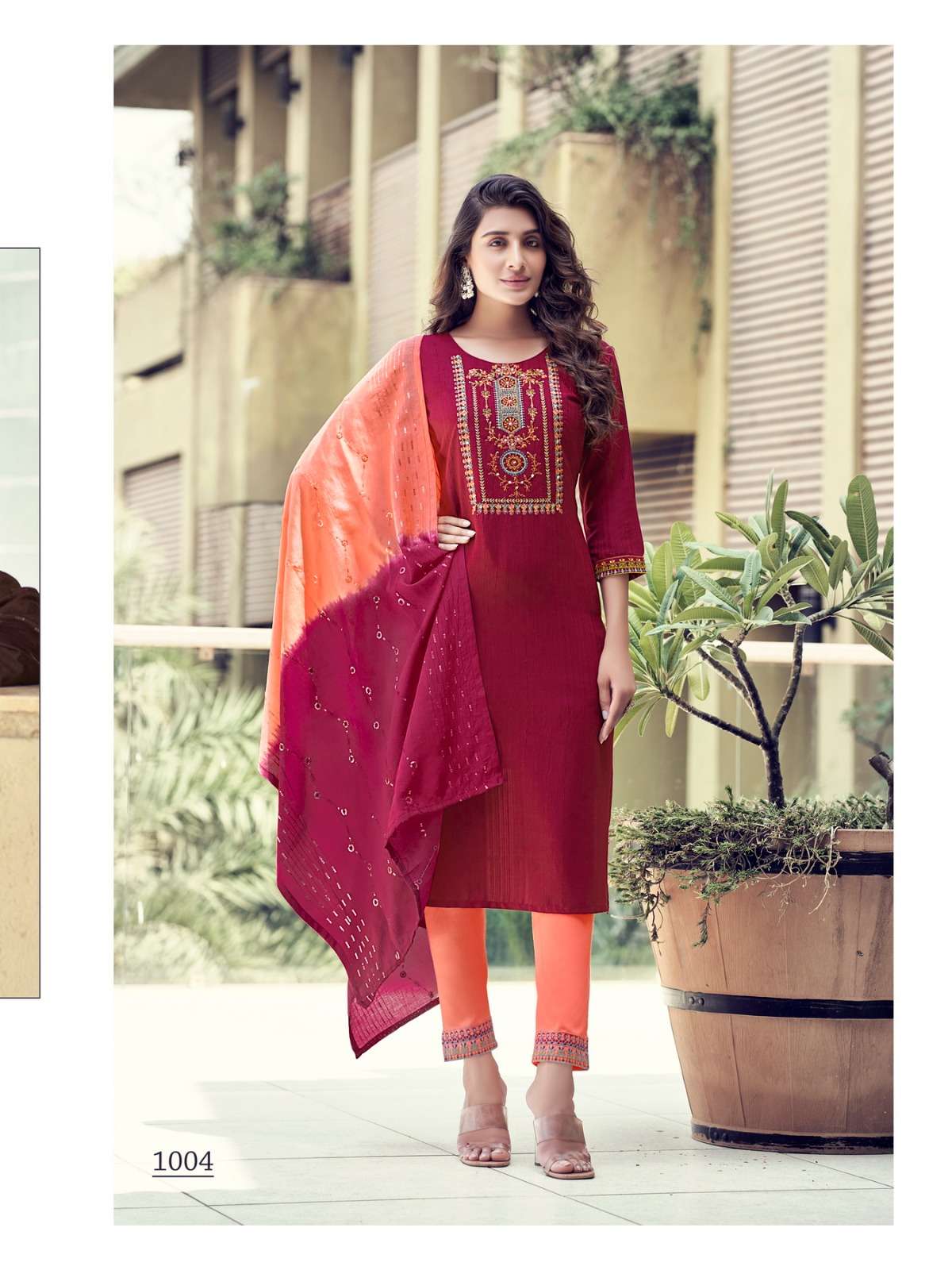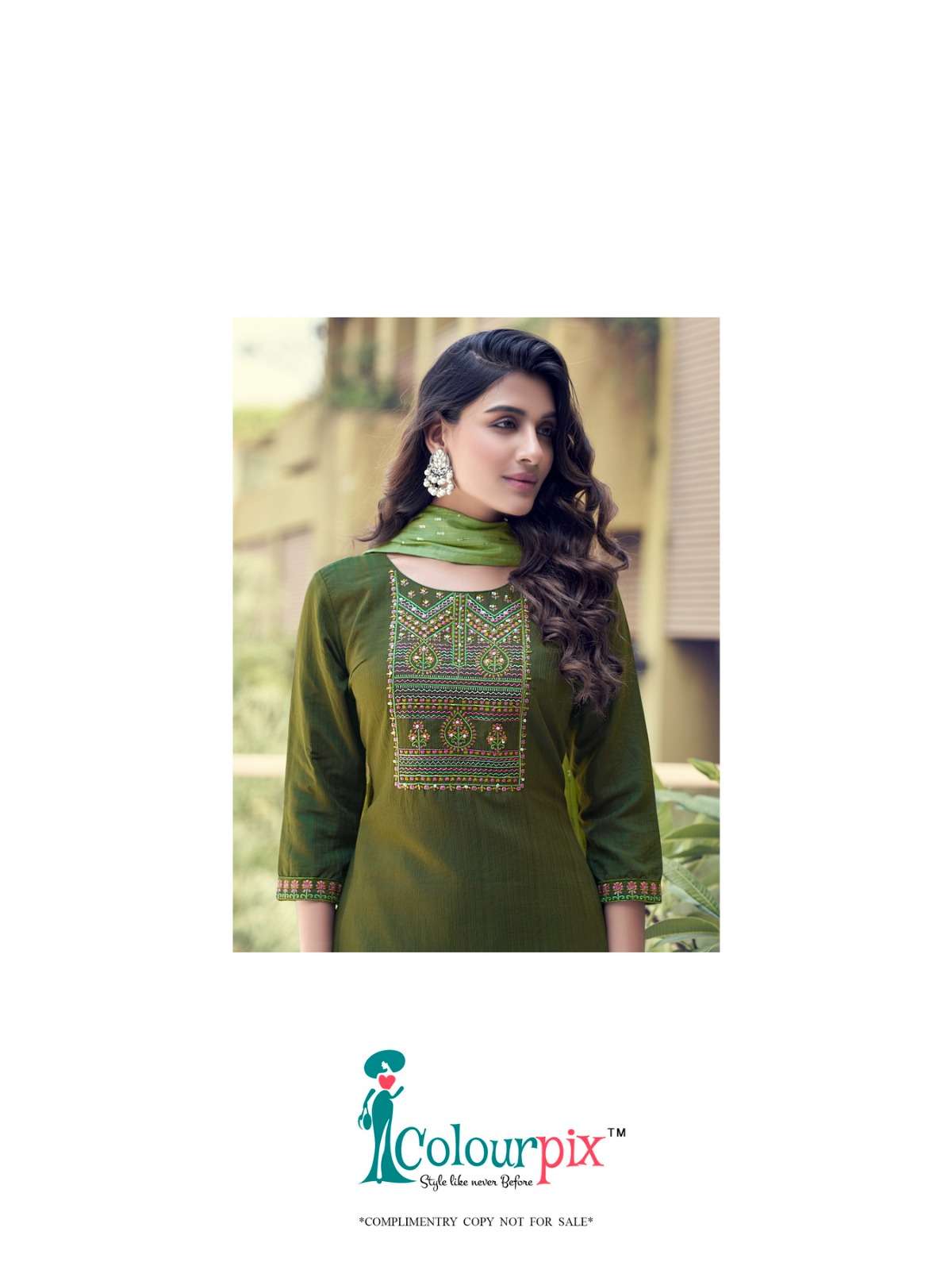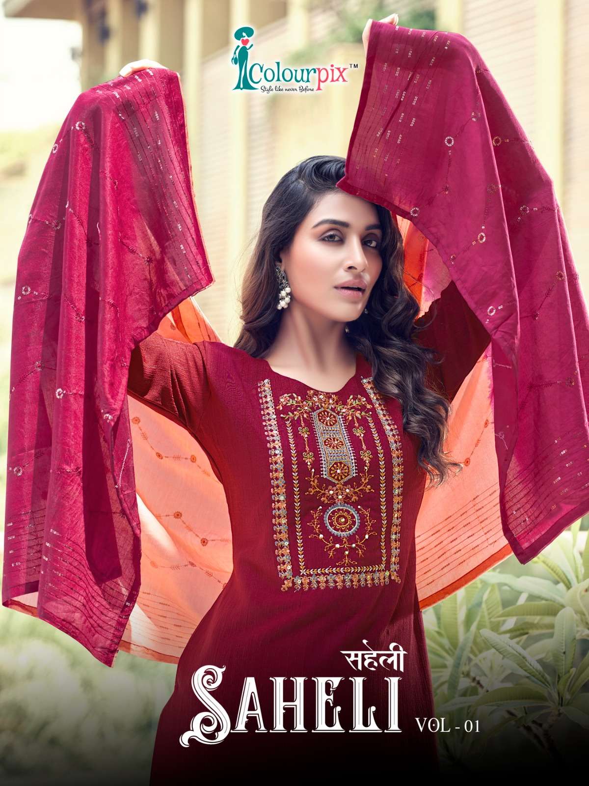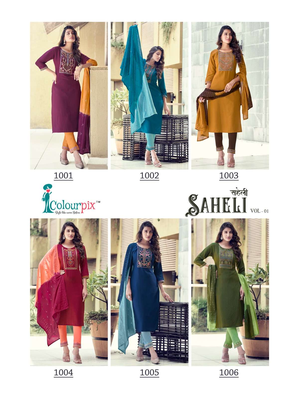 colourpix present saheli vol 1 fancy work kurti with pant and chanderi silk dupatta catalog