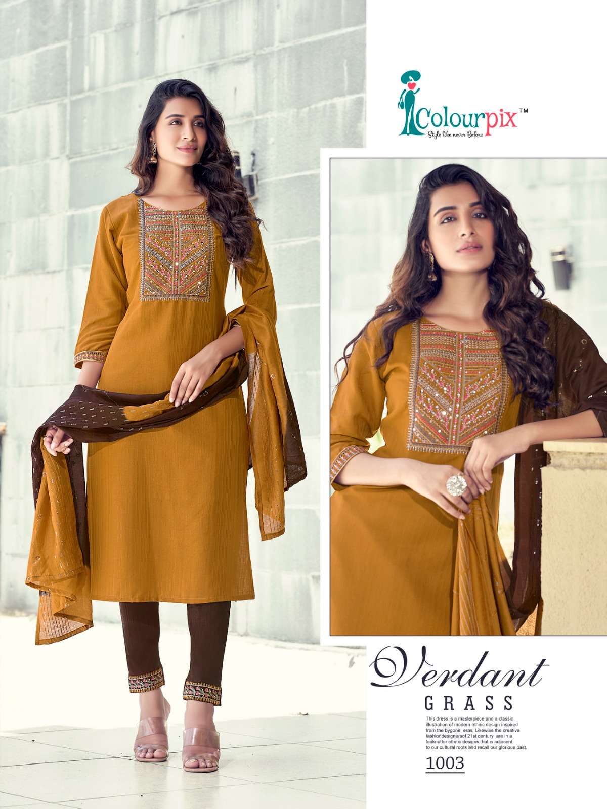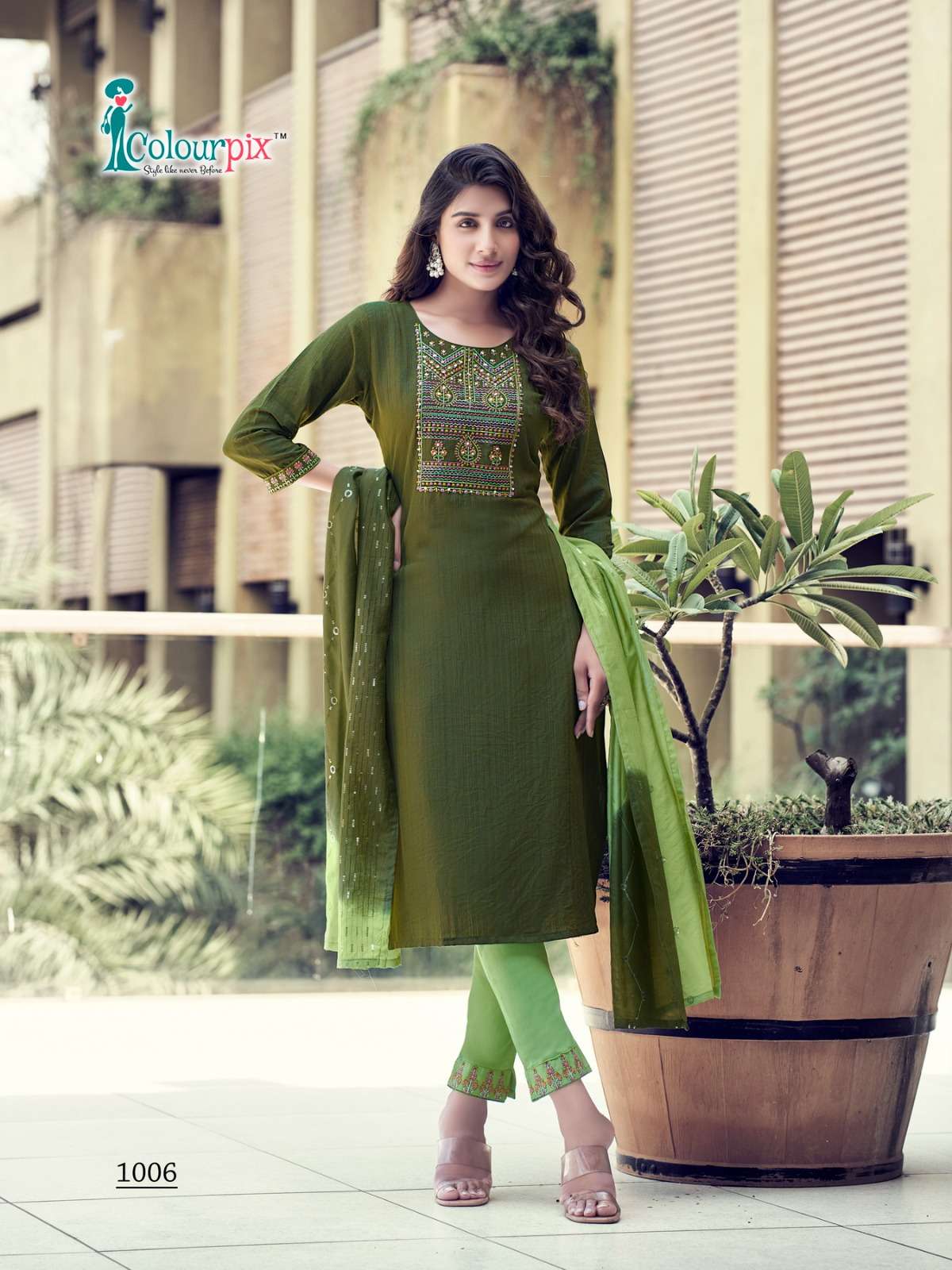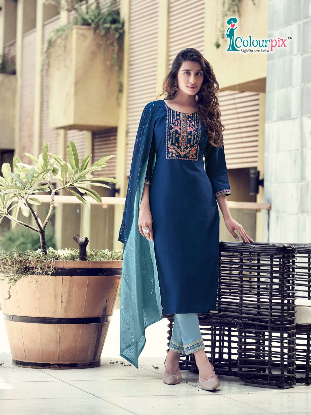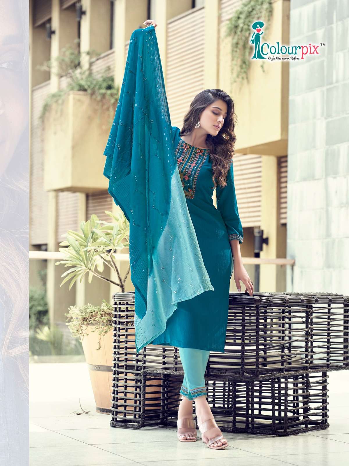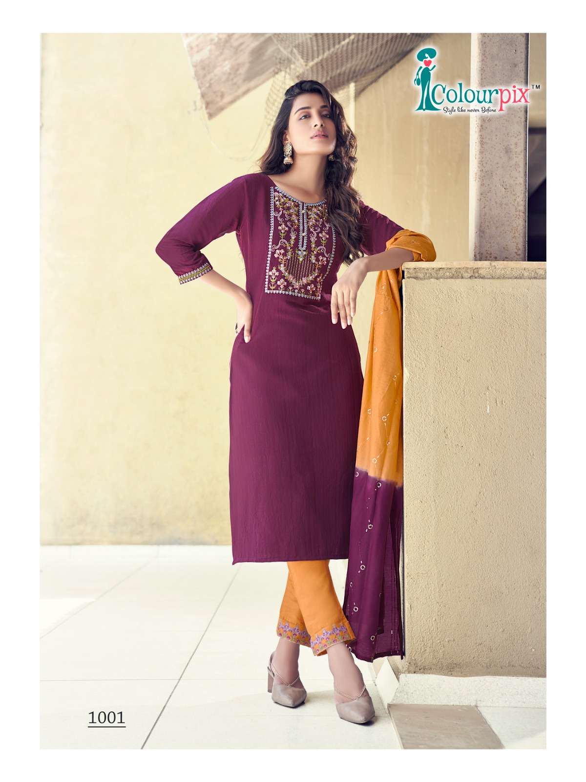 colourpix present saheli vol 1 fancy work kurti with pant and chanderi silk dupatta catalog