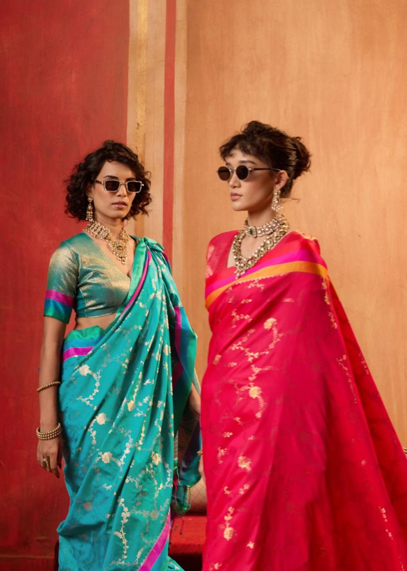 Brand : Rajtex Catalog: Colours Series : 001 TO 005 Saree : Soft Silk Satin Patta Handloom Weaving Blouse : Soft Silk Price : 1095/- +5%GST Occasion : Party Wear ,Festival Wear, Carnival Wear |