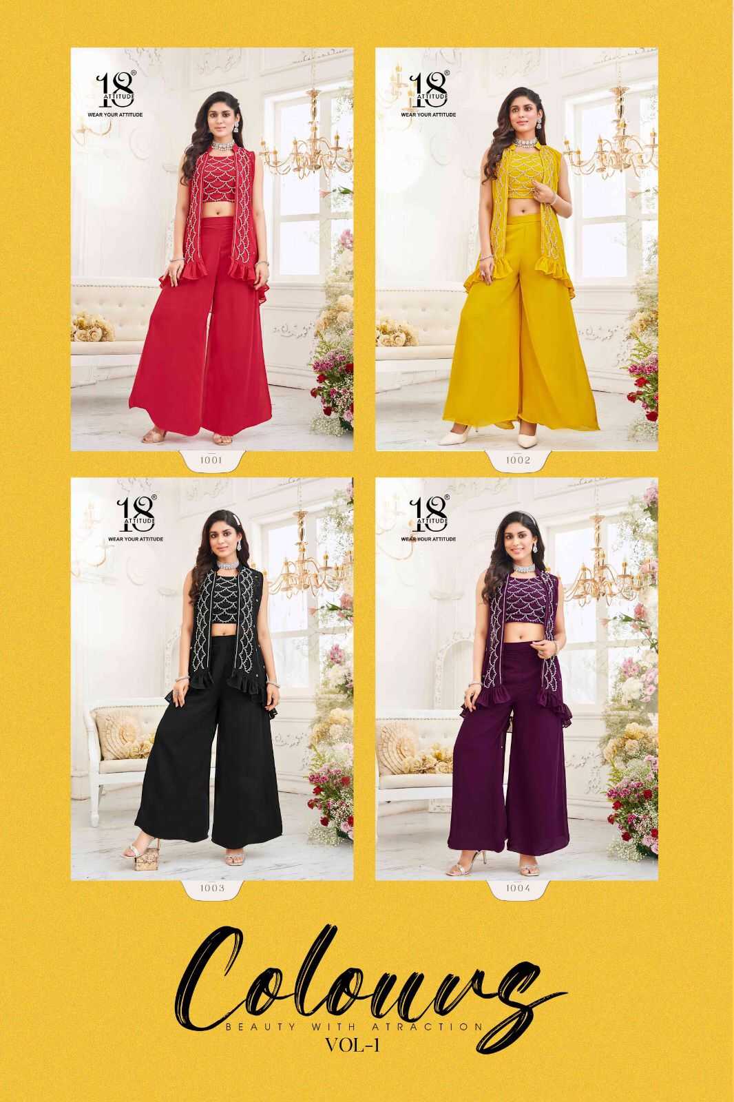 colours vol 1 by 18 attitude fully stitch shrugs choli with palazzo indo western dress