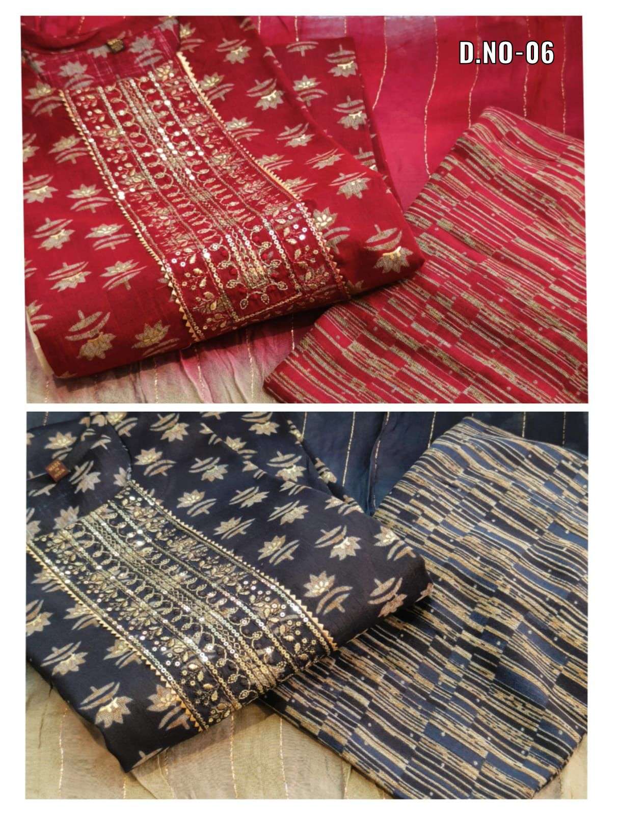 COMBO 06 Heavy Reyon CAPSULE PRINT Foil With Stand Patti Lace & WORK WITH PANT COMBO SET WHOLESALER BEST RATE