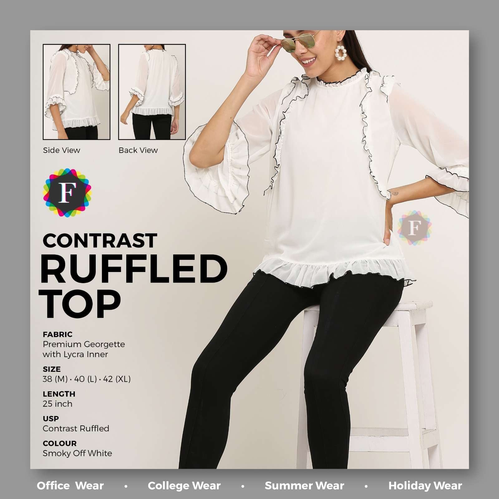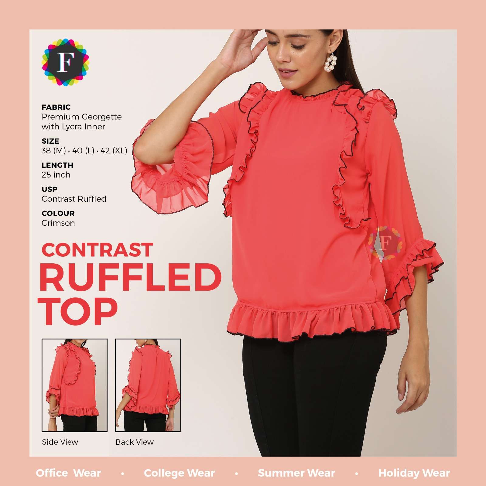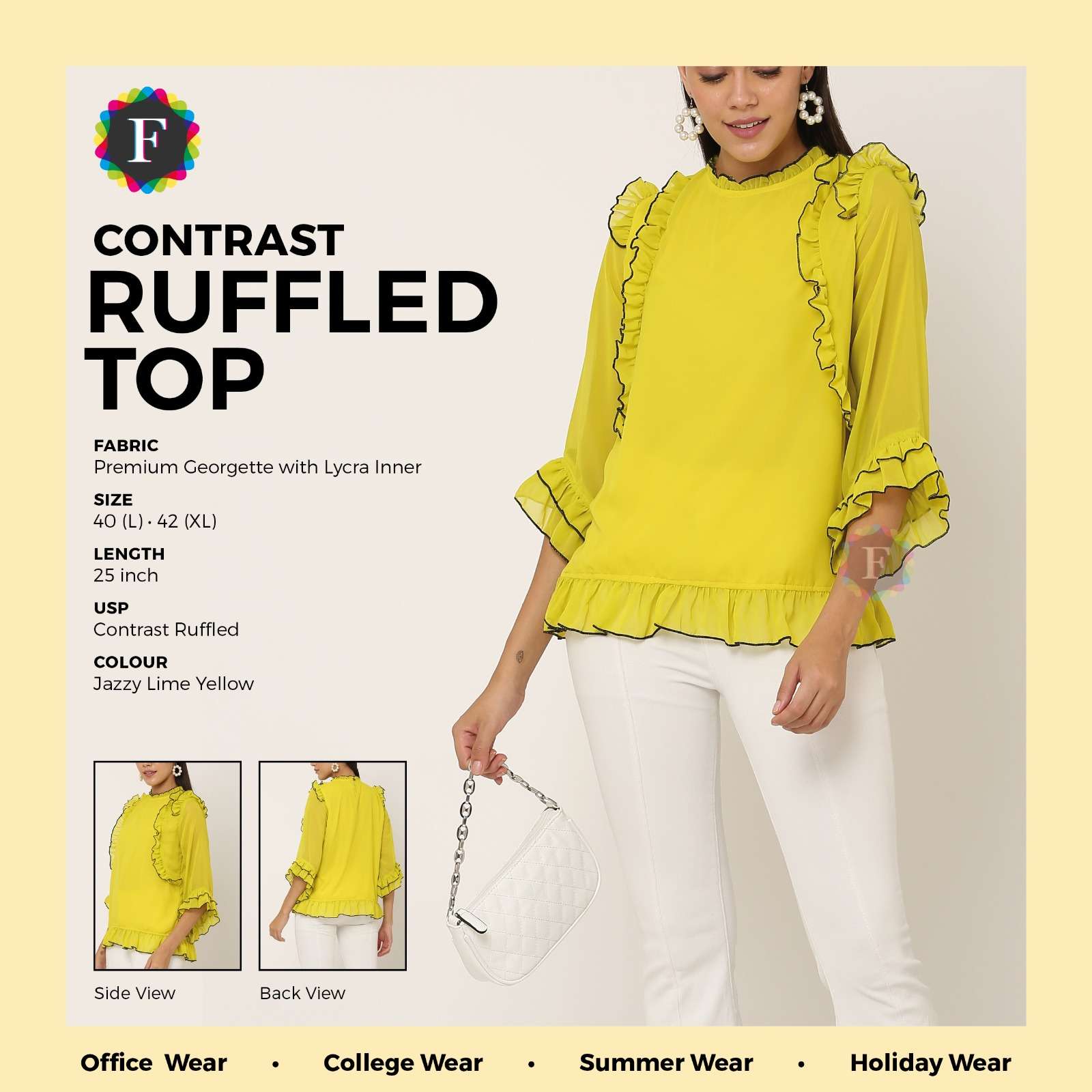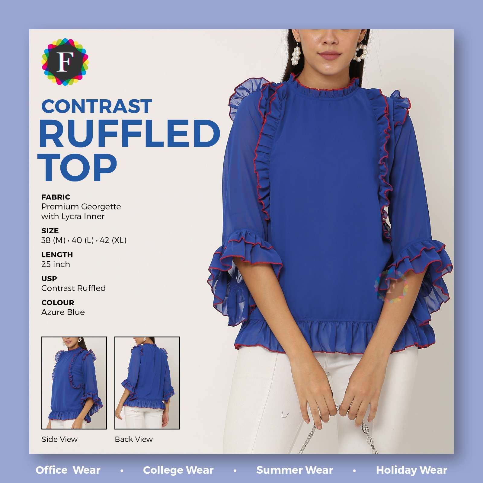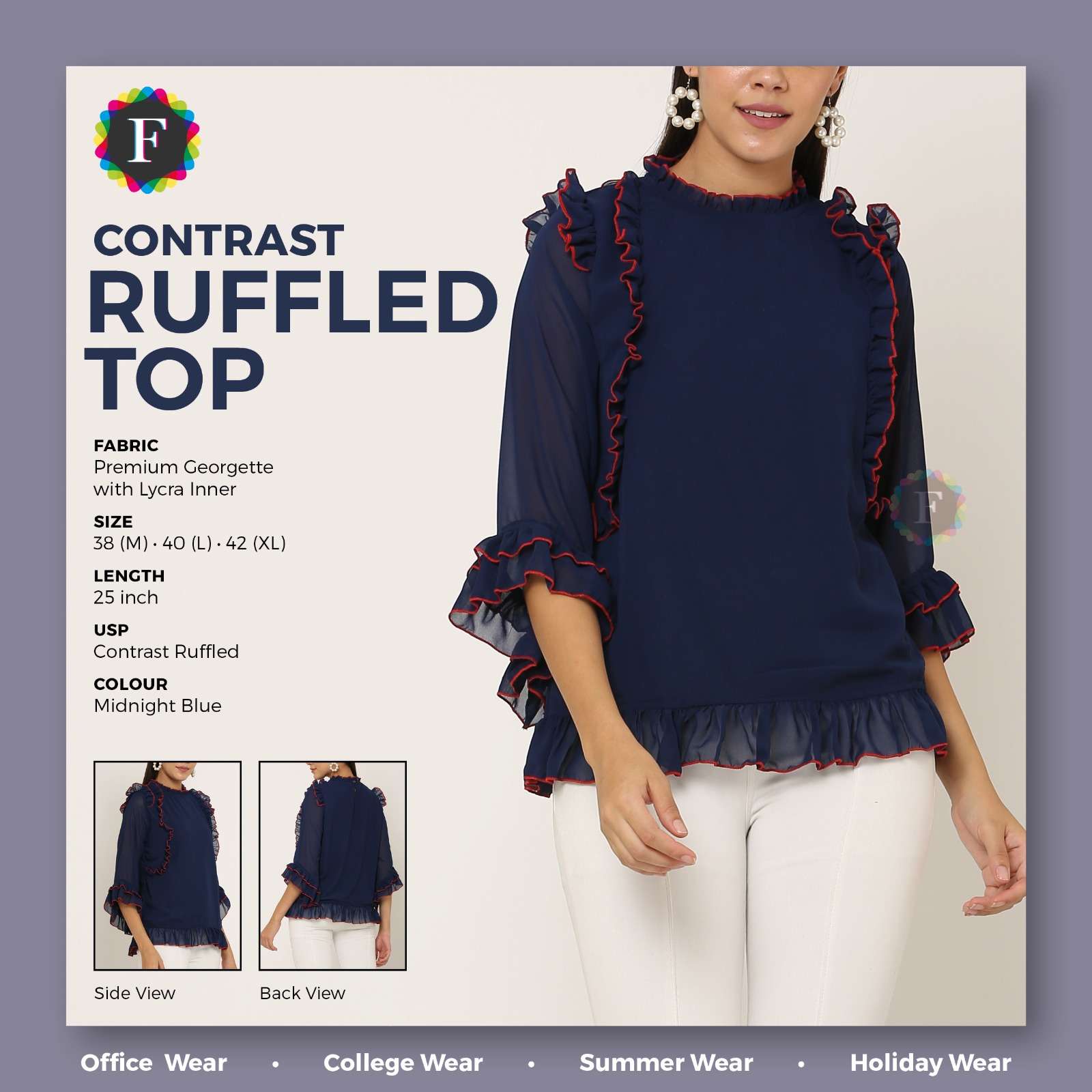 BOOK CATALOGUE CONTRAST RUFFLED TOP ON KRISHNA CREATION. CALL ON +91-8866778727.