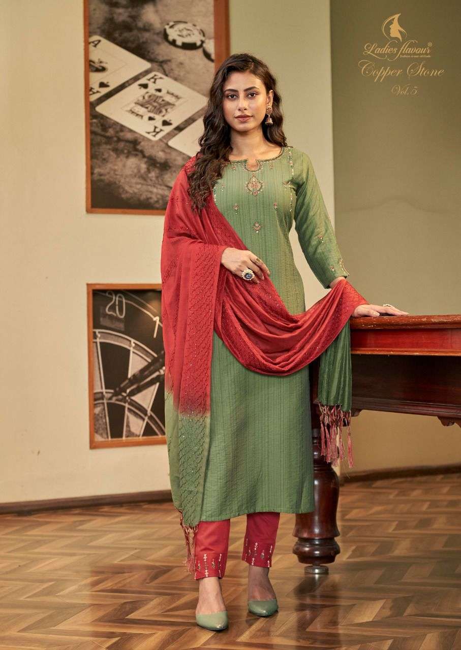 Copper Stone Vol 5 Readymade Embroidery Salwar Kameez With Heavy Khatli Work By Ladies Flavour