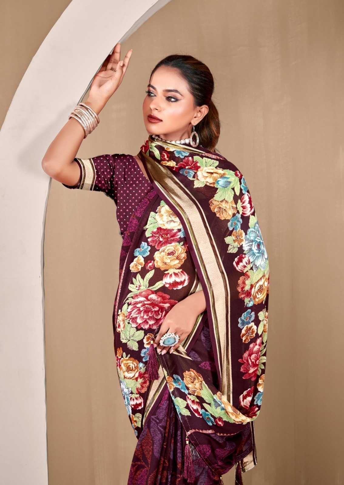 cosmos by kiyra saree rimzim viscose printed saree with blouse