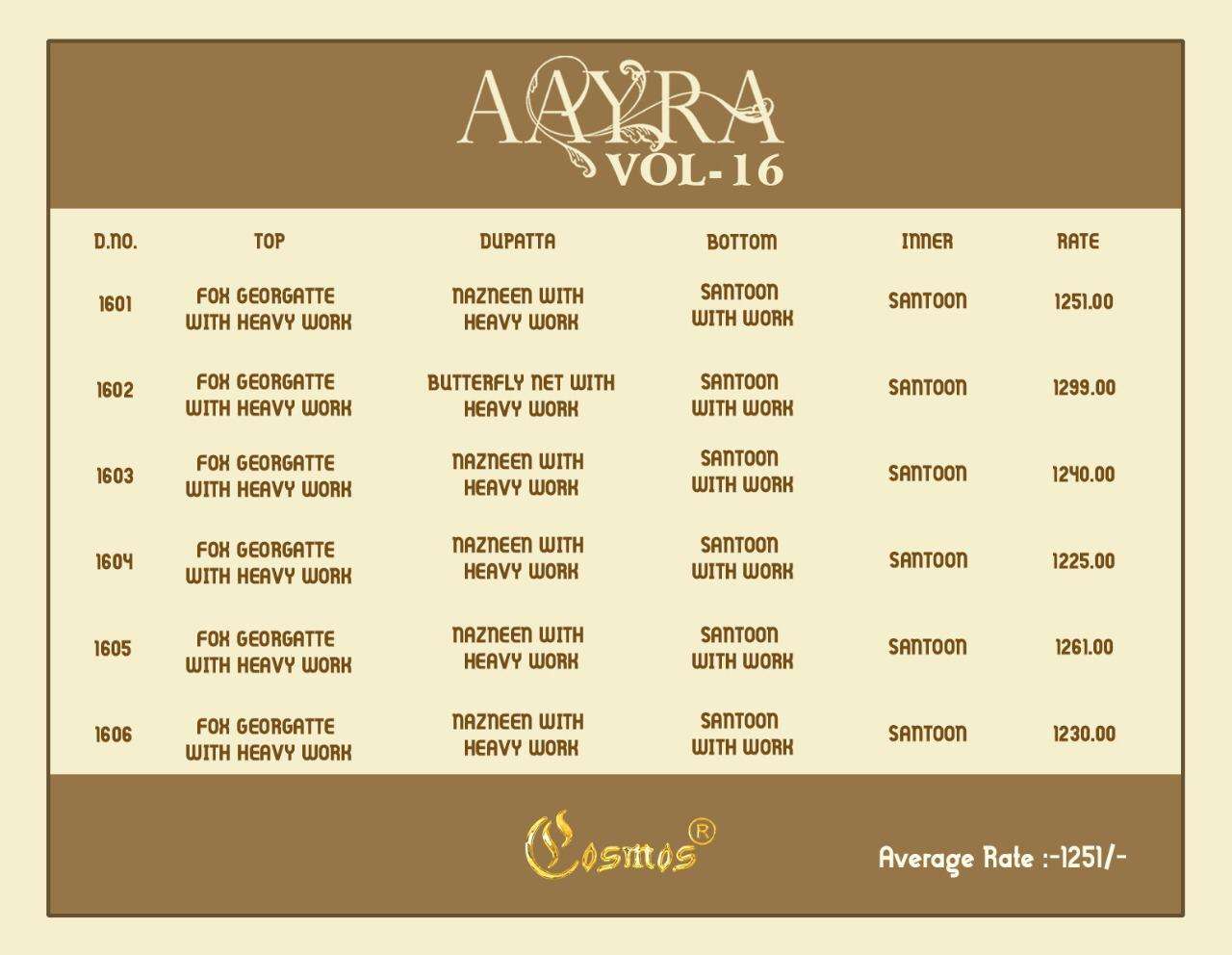 COSMOS FASHIONÂ AAYRA VOL 16 RATE - 1251/- PCS - 06 |