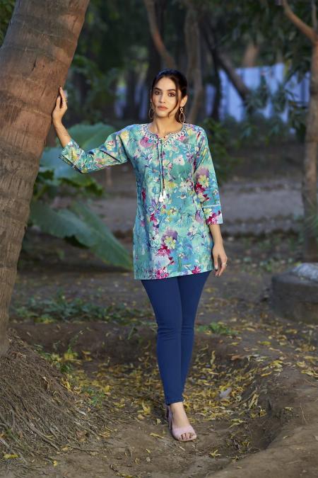 👏🏻👏🏻 Catalouge : 💃 COTTON CANDY Vol 05 💃 Fancy Short Tops Fabric in Top : Premium Cotton Foil Prints 60*60 Rate : 355/* + GST 5%