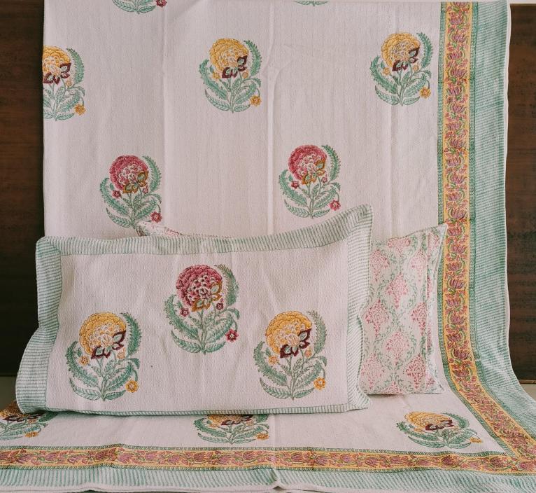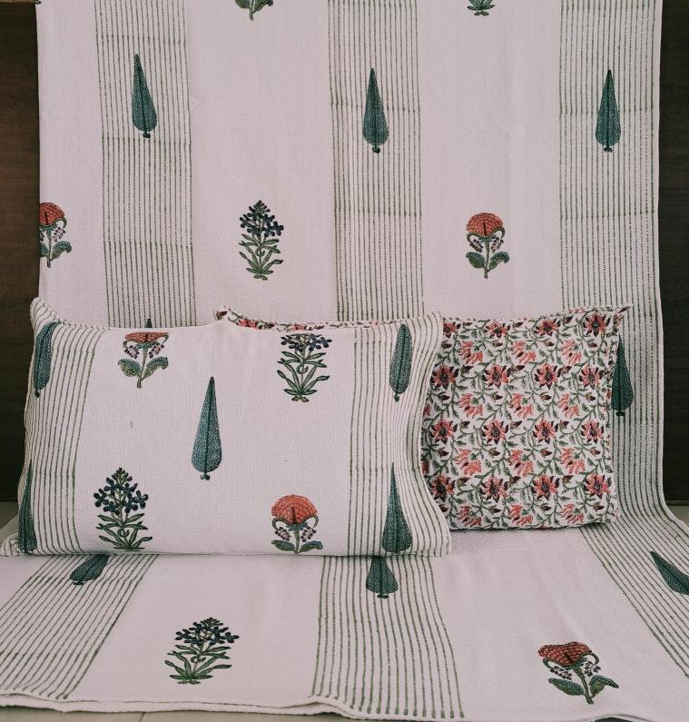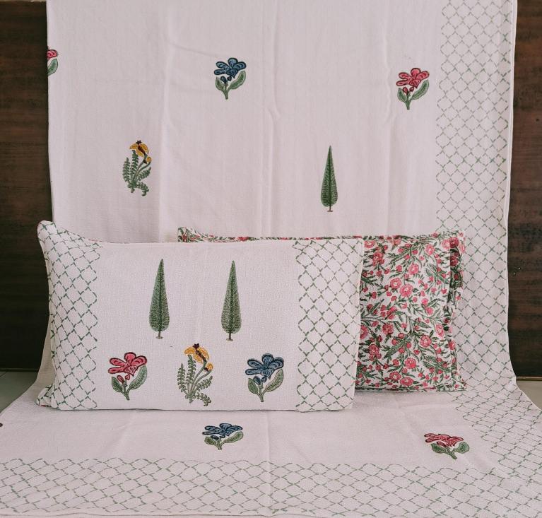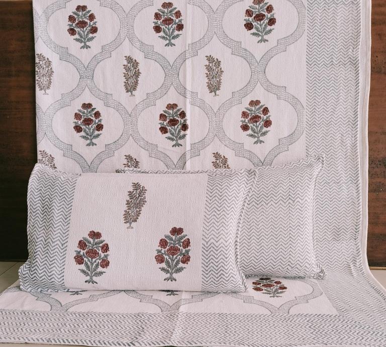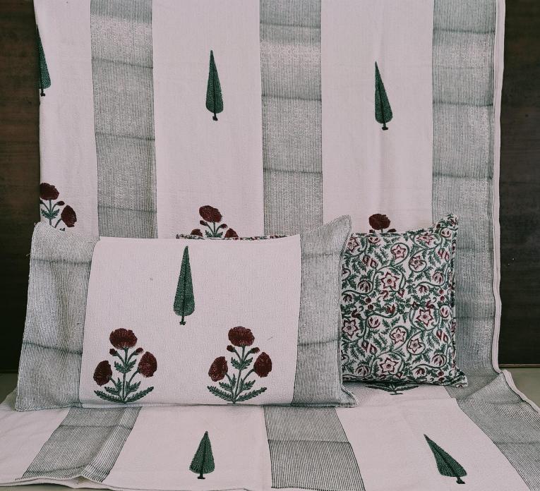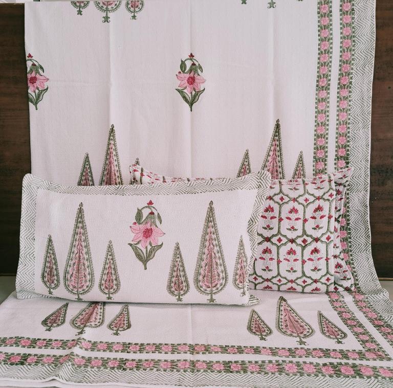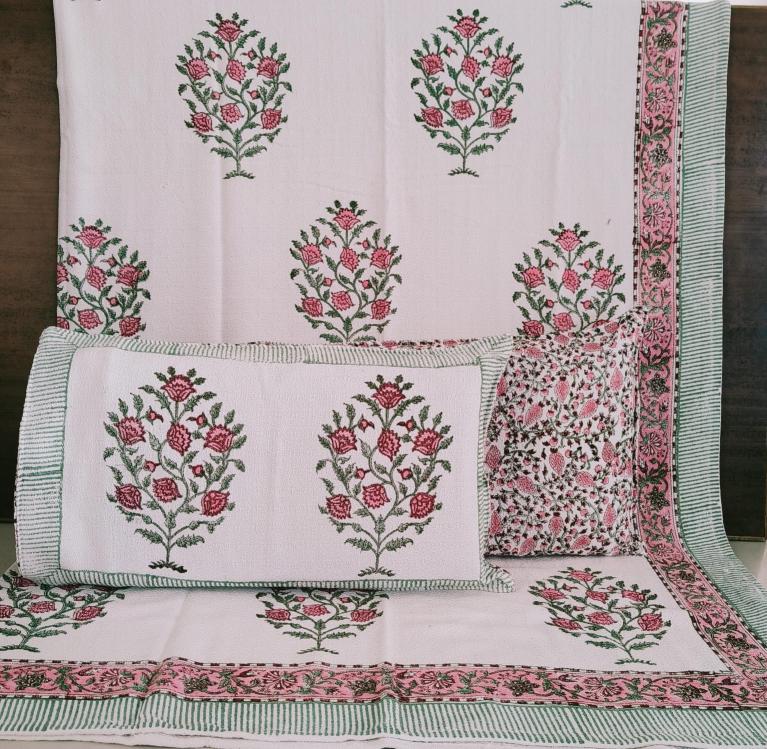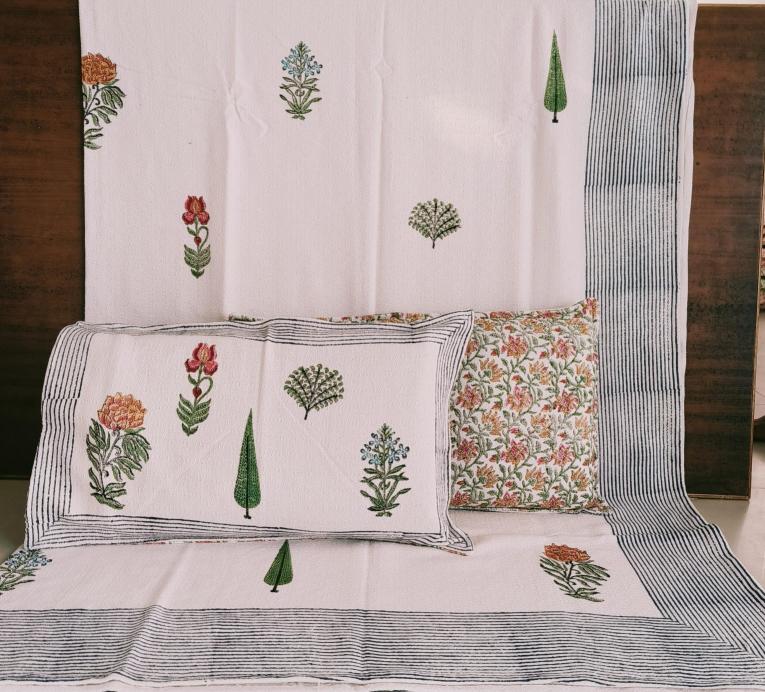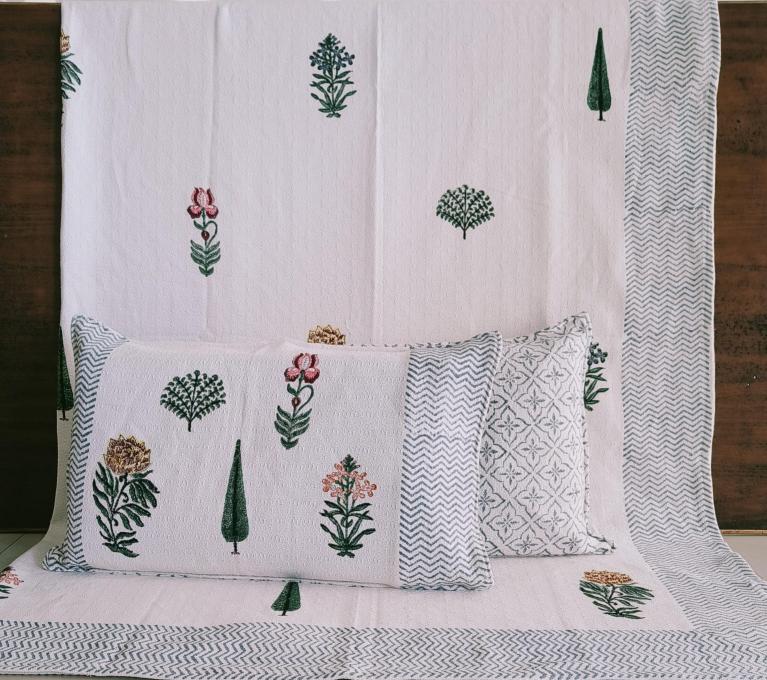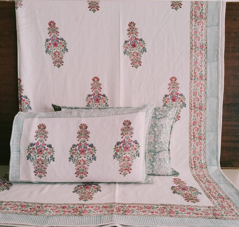 cotton hopper fabric bedcover hand block designer with 2 pillow covers