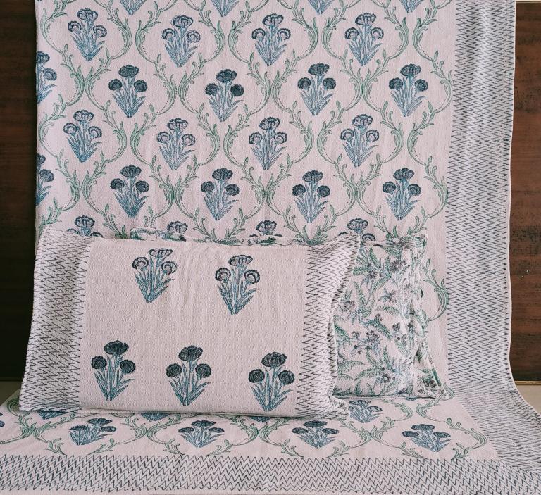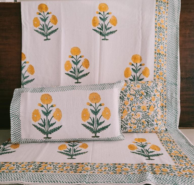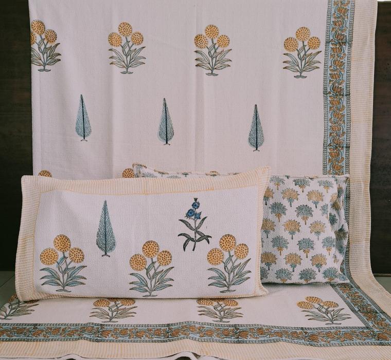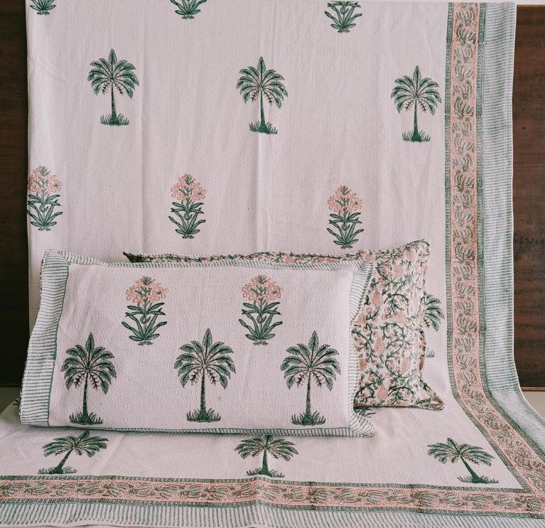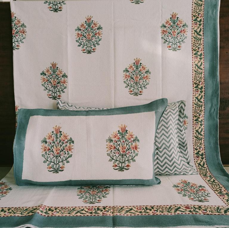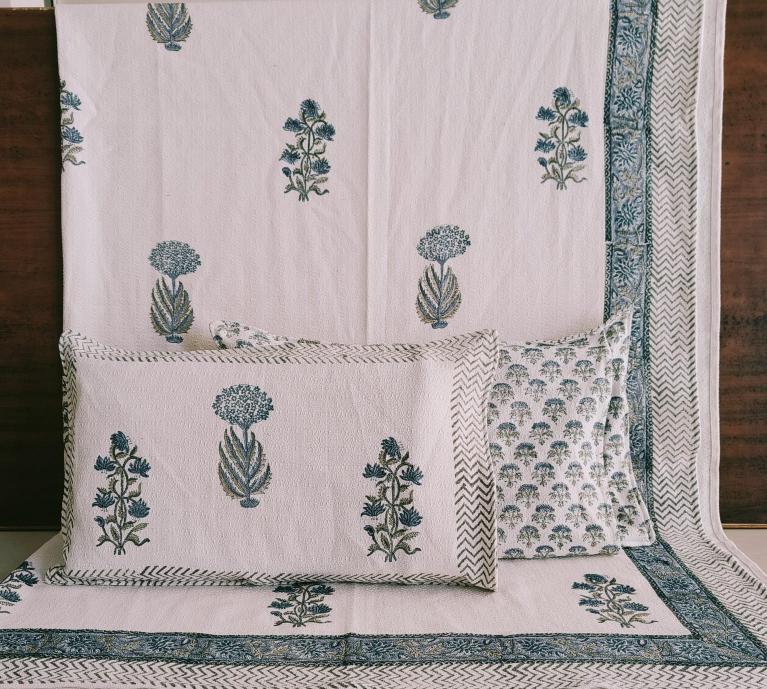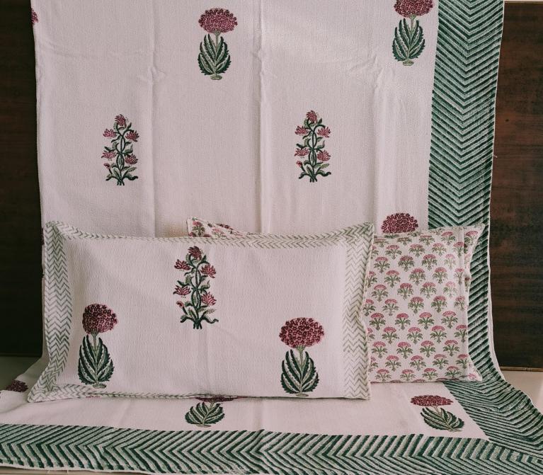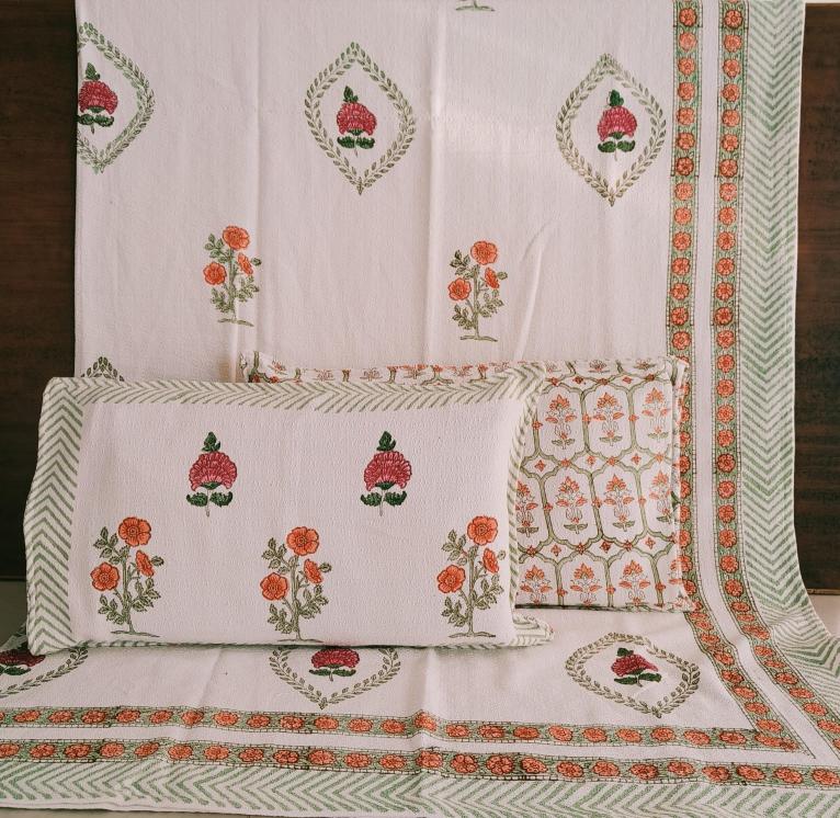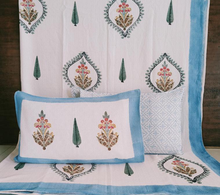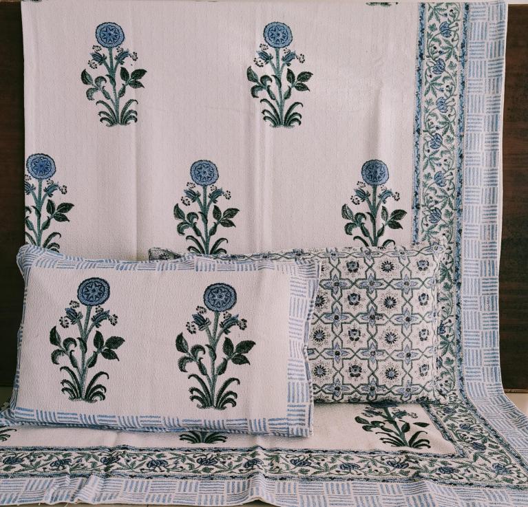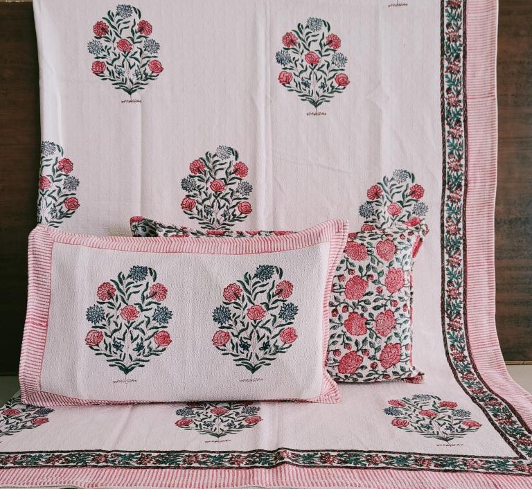 cotton hopper fabric bedcover hand block designer with 2 pillow covers