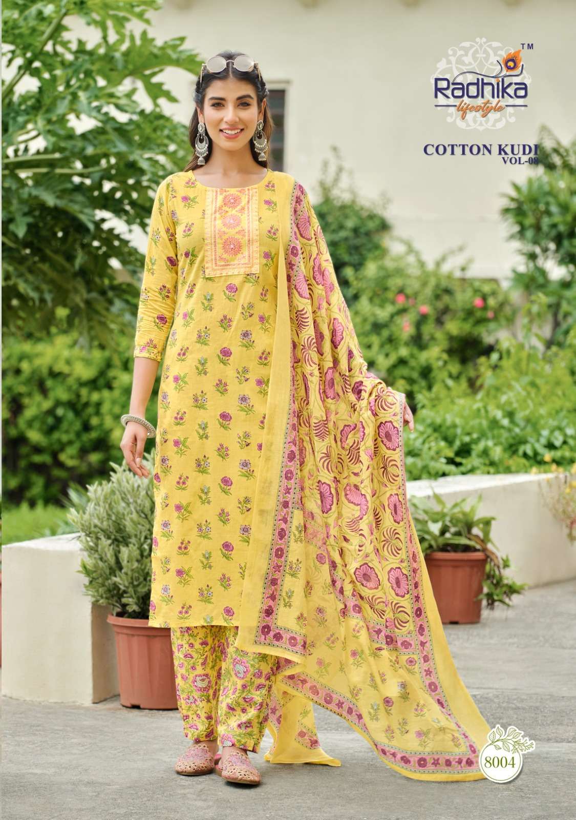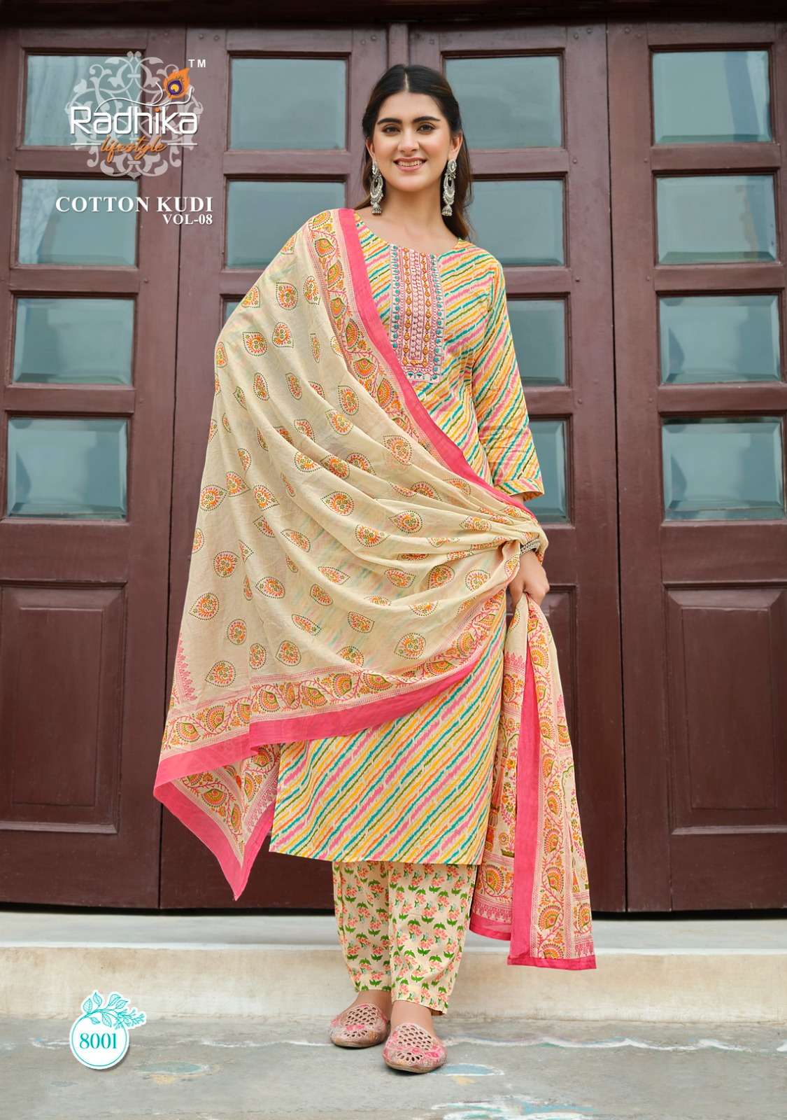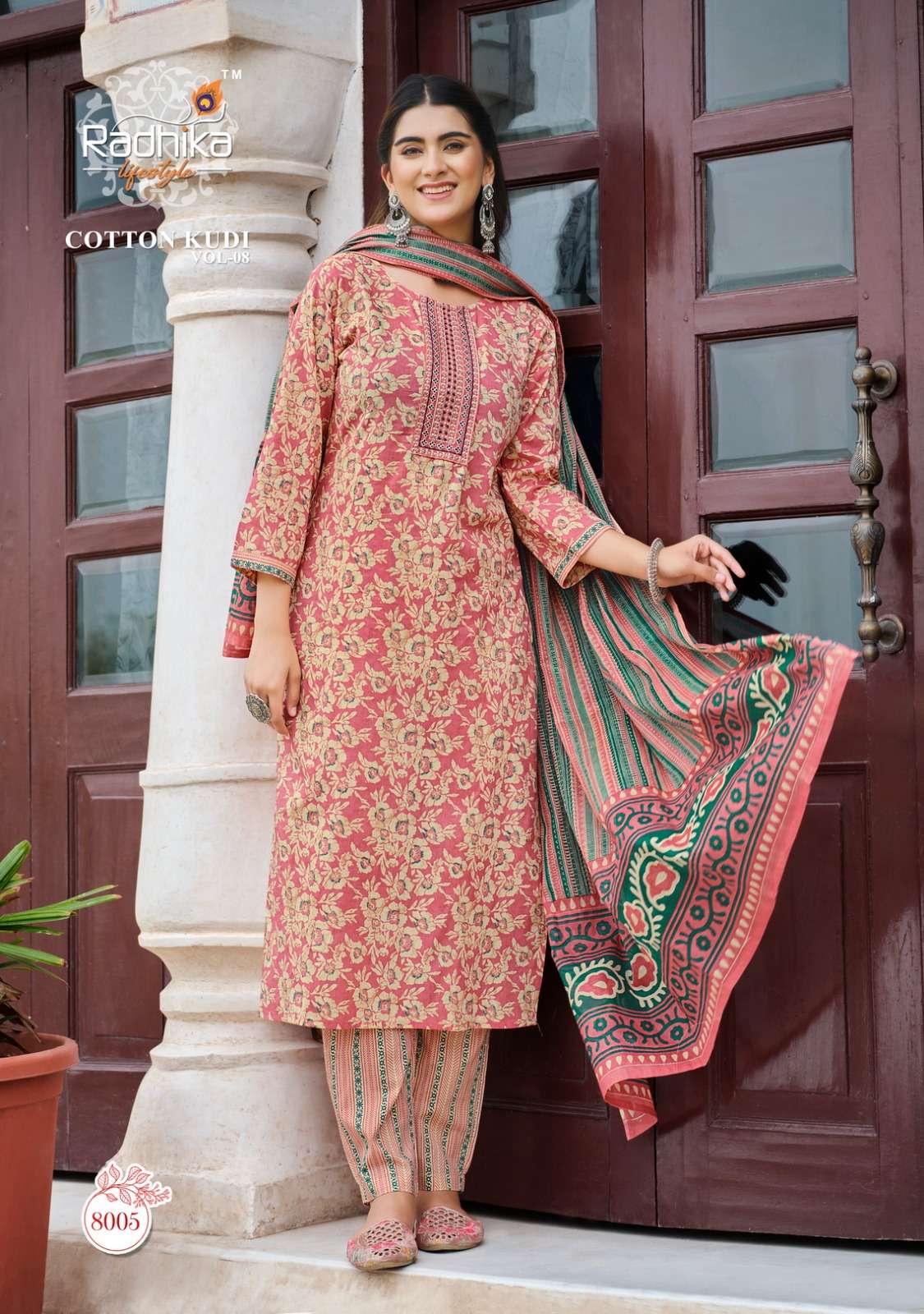 cotton kudi vol 8 by radhika lifestyle beautiful print readymade cotton ladies 3pcs suits