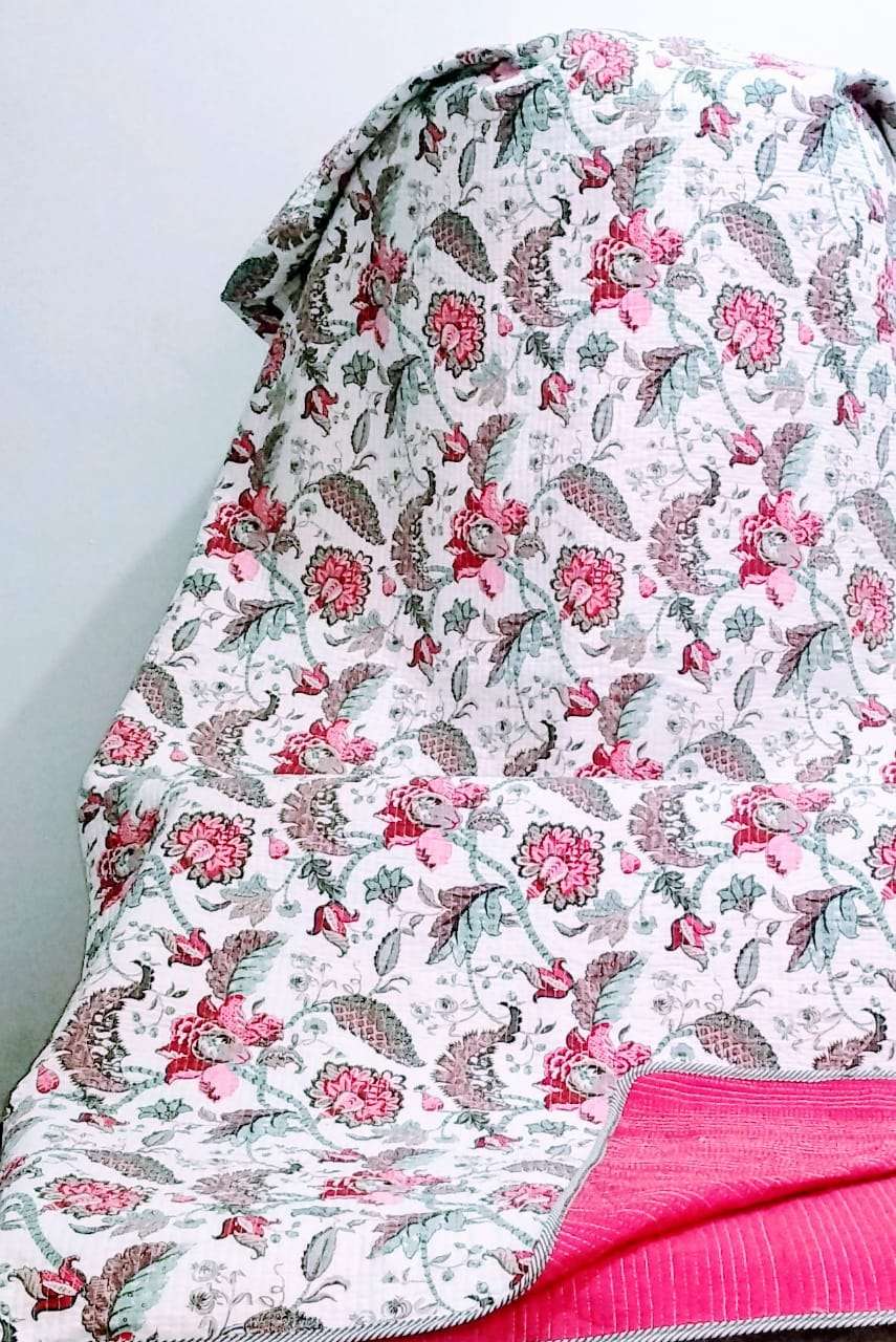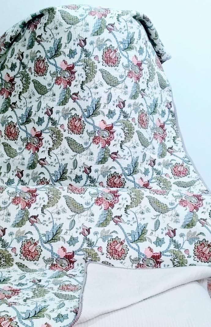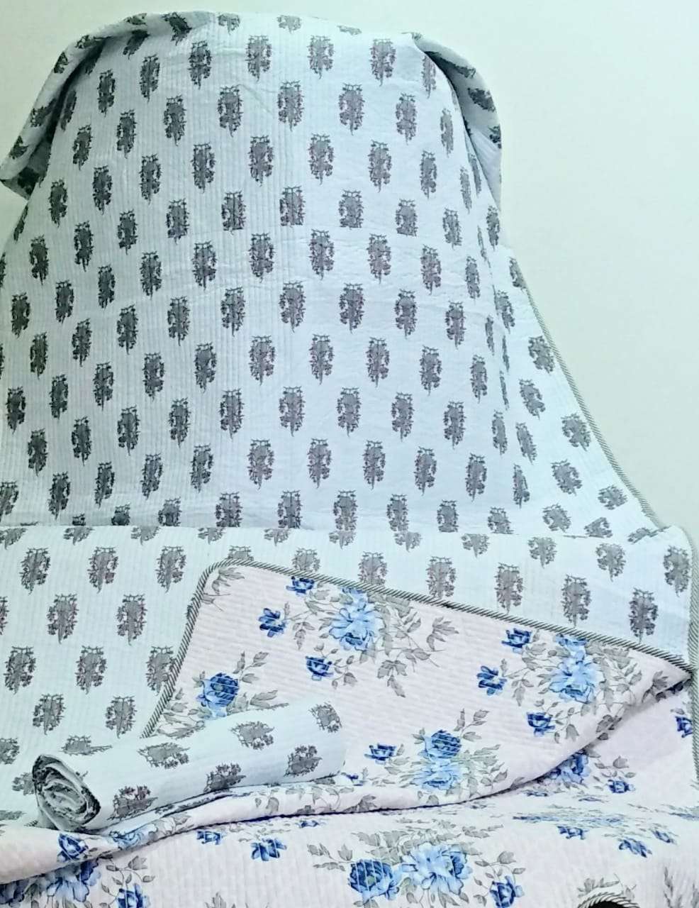 New Item Cotton Printed Quilted Bedcover With 2 Pillow Covers Size 90x108 Inch Weight 2.2 KG Material 100% Cotton Set - 1 Quilted Bed cover and 2 Pillow Covers Pack in PVC Bag Price - 1400+GST Moq - 13 It is without Joint |