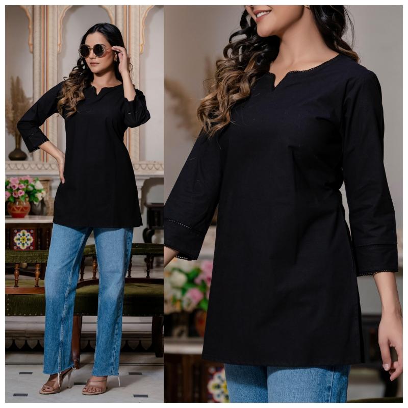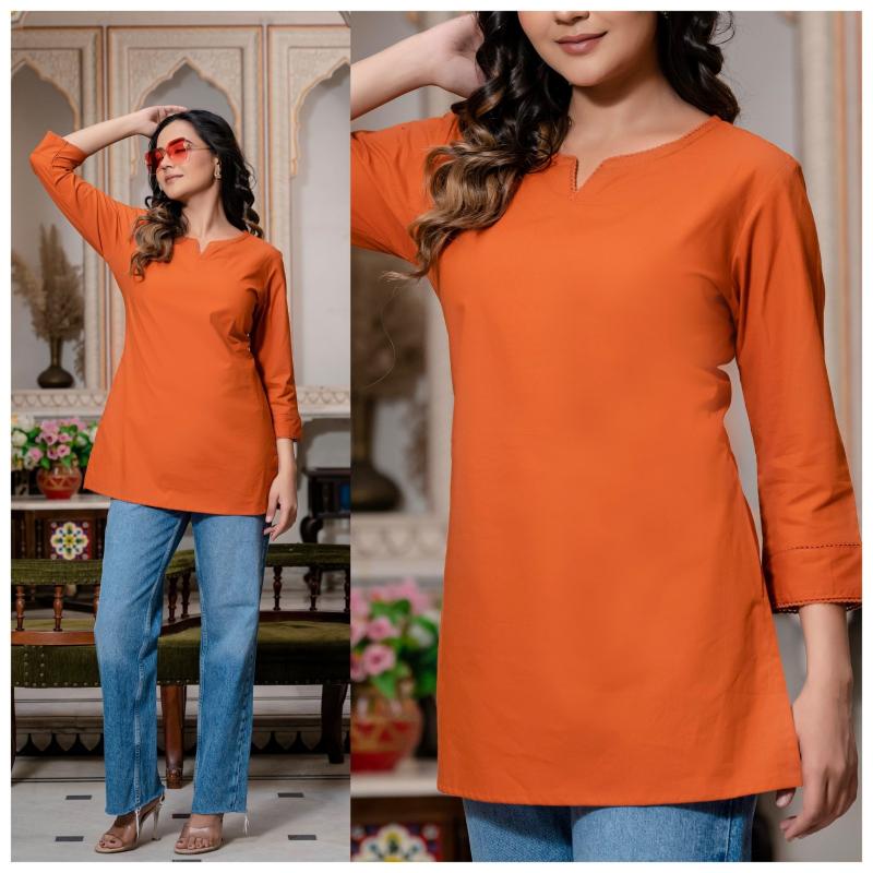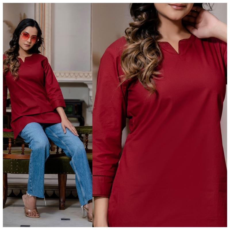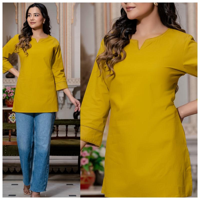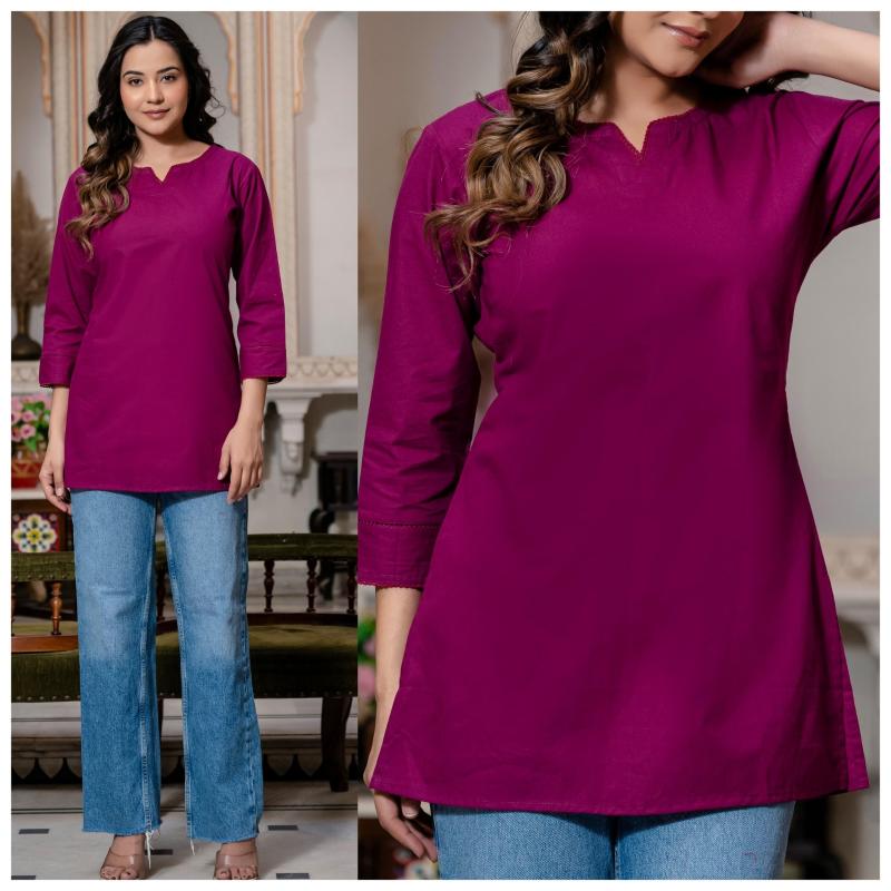Cotton Solid Premium Quality Poplin Short Kurtis |