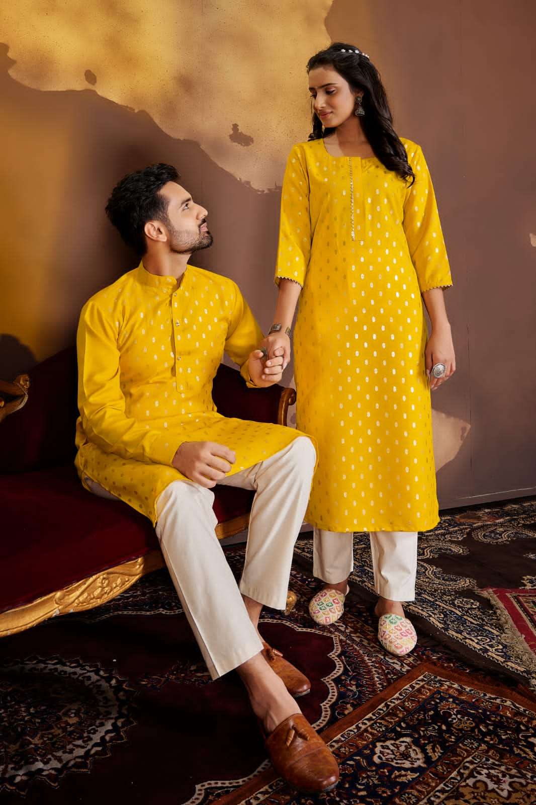 couple dream combo of mens kurta with payjama and ladies kurti with pants