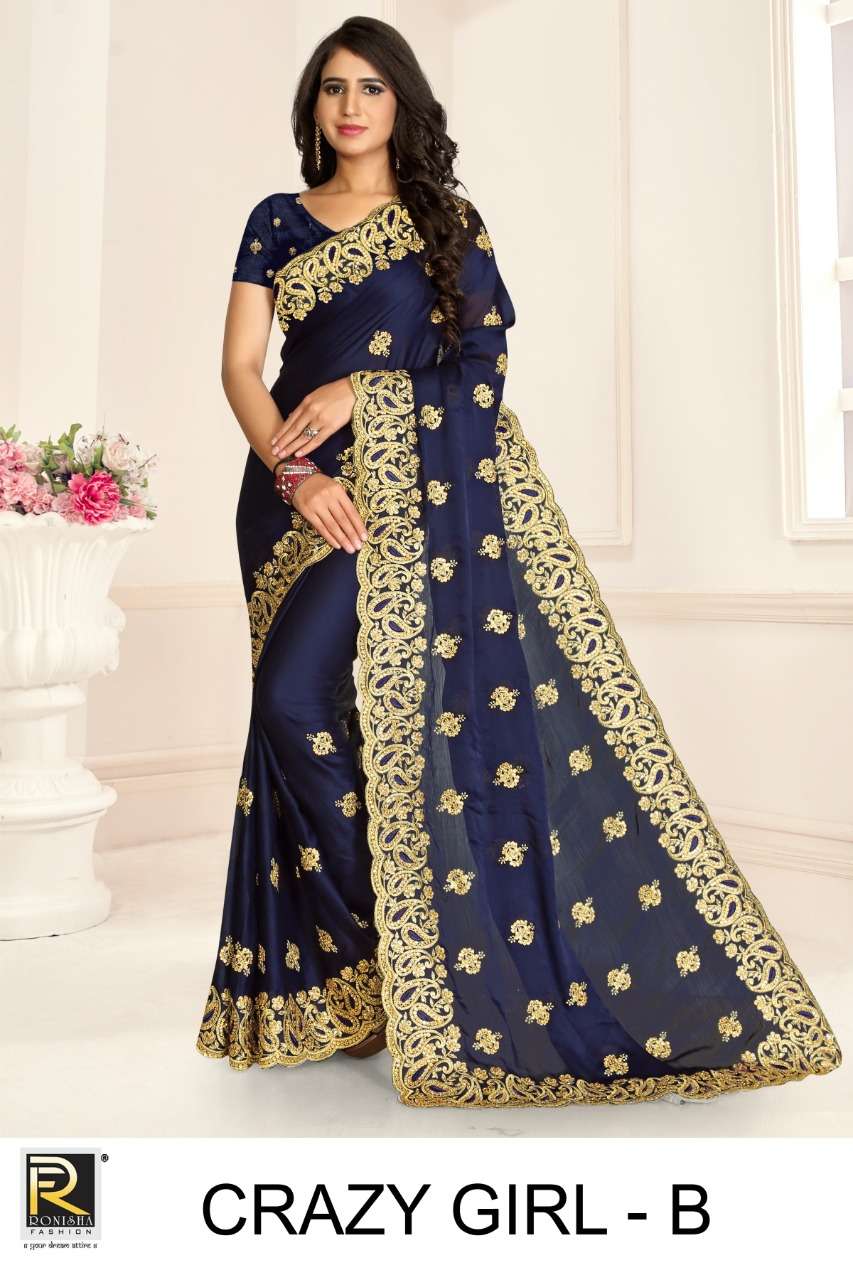 Crazy girl by ranjna saree embroidery warked heavy diamond work saree Collection