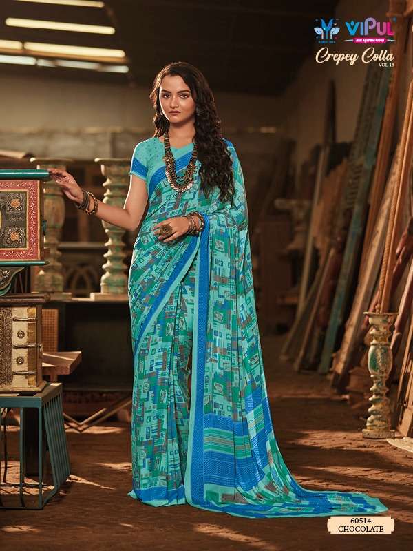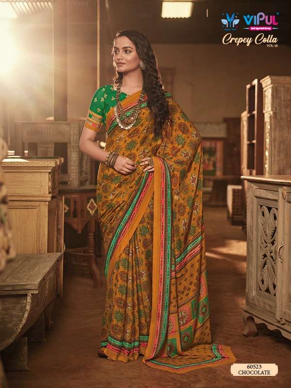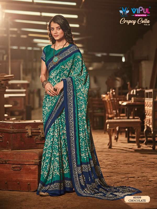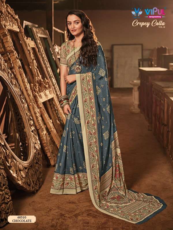 crepey colla vol 18 by vipul printed silk fancy saree exporter