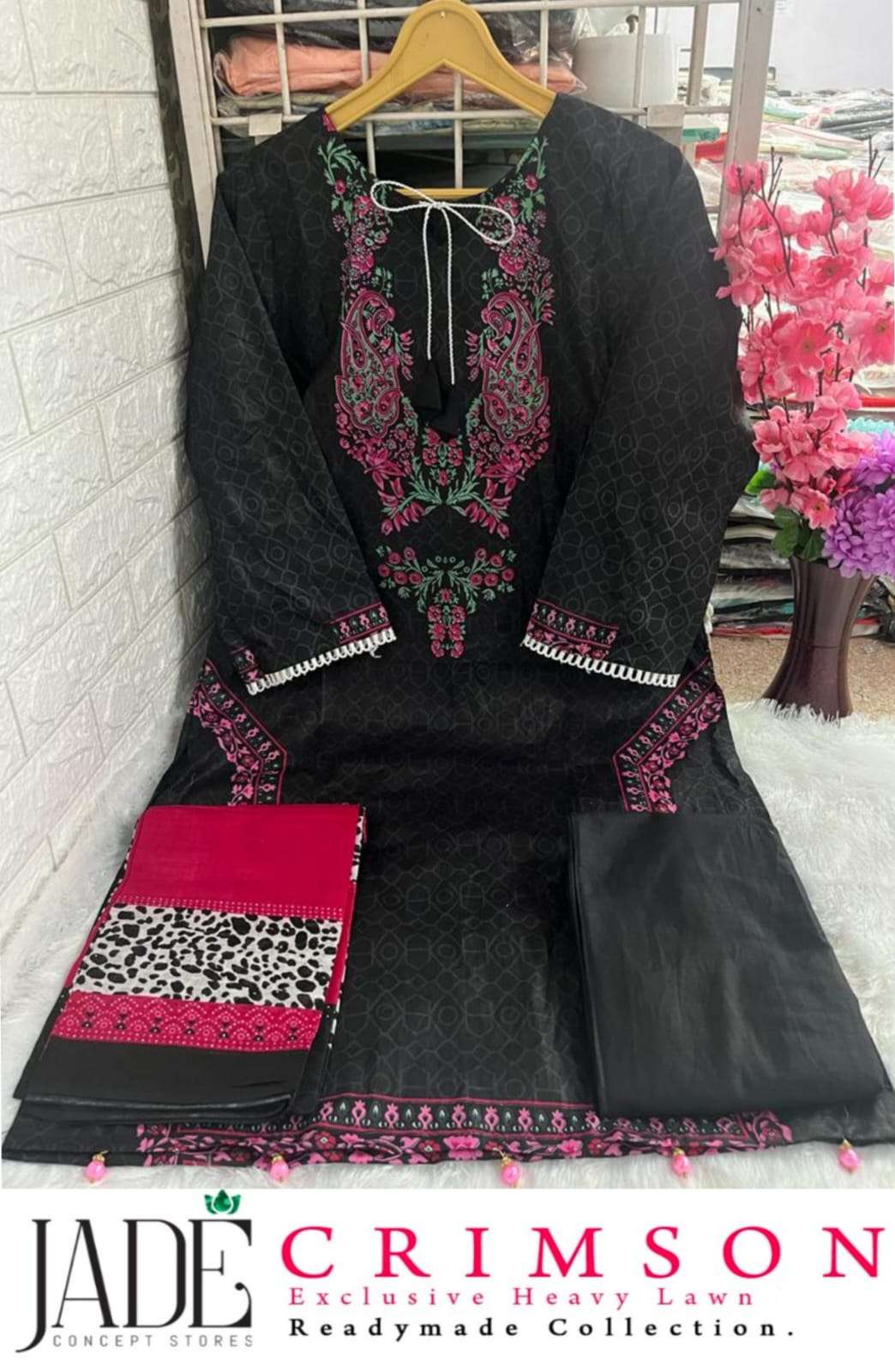 crimson black design jade concept store readymade pakistani salwar kameez combo set