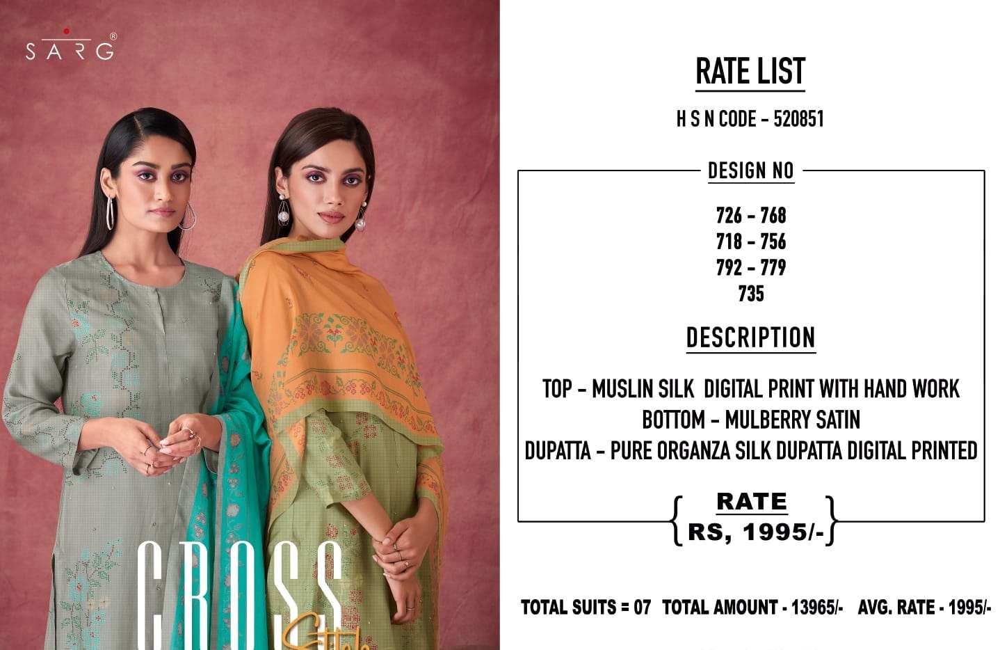 Sarg Presents Latest Collection Launched on 11-05-2023. Presenting Beautiful collection of 7 PCS with Unstitched .