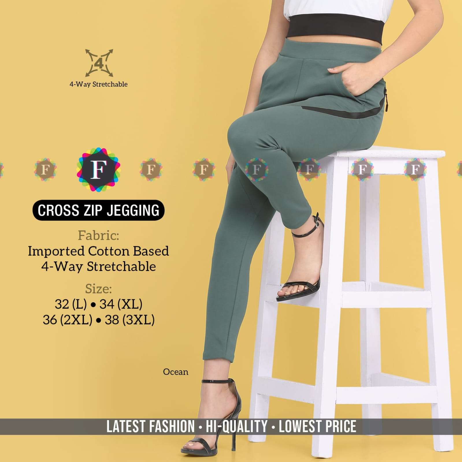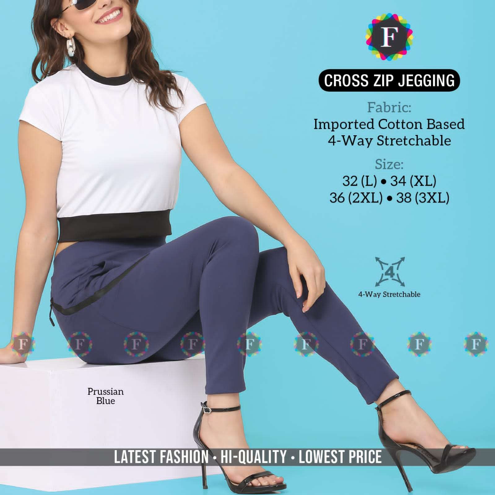 cross zip jegging imported cotton base jegging bottom ladies wear