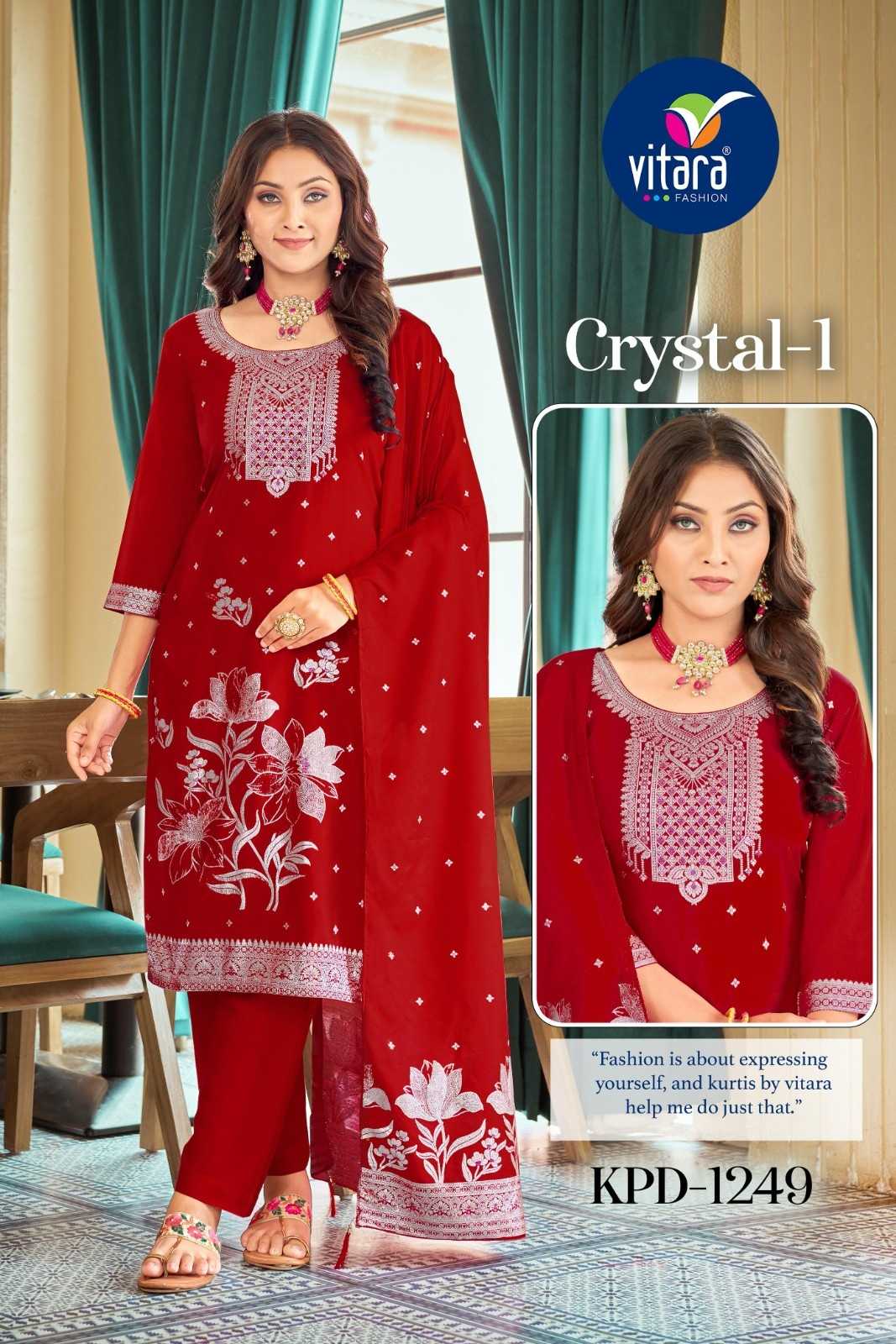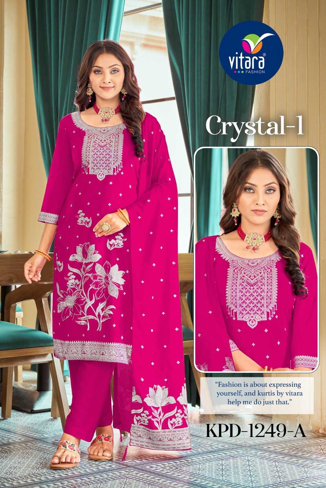 crystal vol 1 by vitara fashion readymade classic muslin weaving jacquard combo set suit