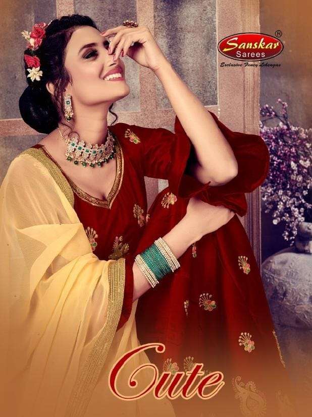SANSKAR STYLE -CUTE-. RATE - 995/- Set to set GST 5 Percent Extra DARK RANGOLI LEHENGA MULTI THREAD WORK HEAVY WORK BLOUSE 6 PIECE CATALOG |