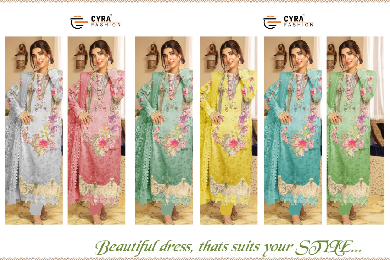 Cyra Fashion Presents Latest Collection Launched on 17-10-2020. Presenting Beautiful collection of 6 PCS with Unstitched .