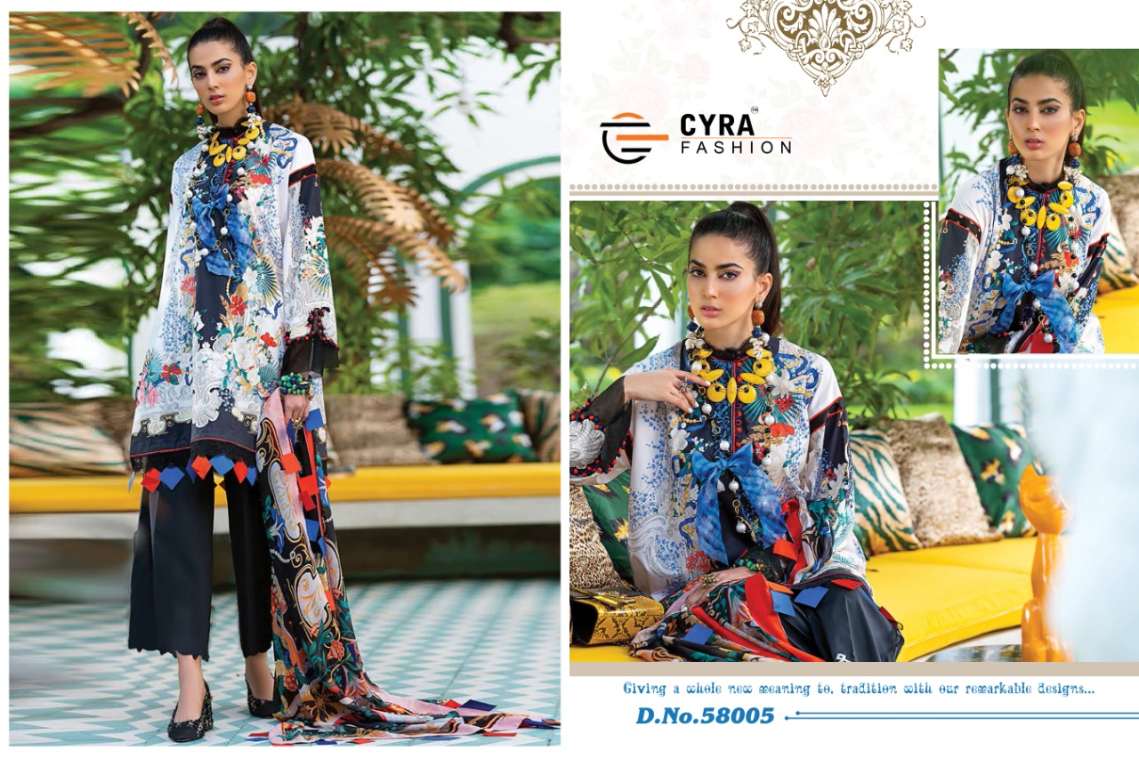 Cyra Fashion Presents Latest Collection Launched on 10-07-2020. Presenting Beautiful collection of 6 PCS with Unstitched .