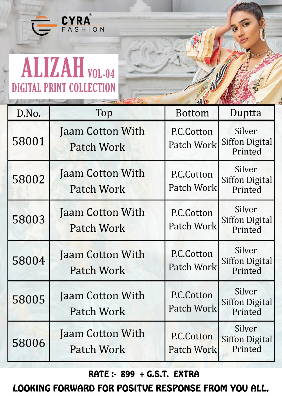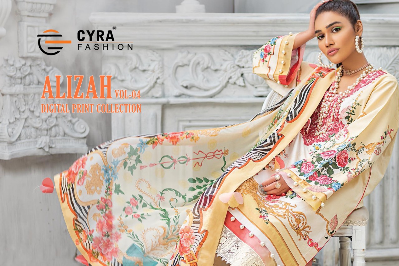Cyra Fashion Alizah Vol 4 Jam Cotton With Patch Embroidery Digital Print Suit