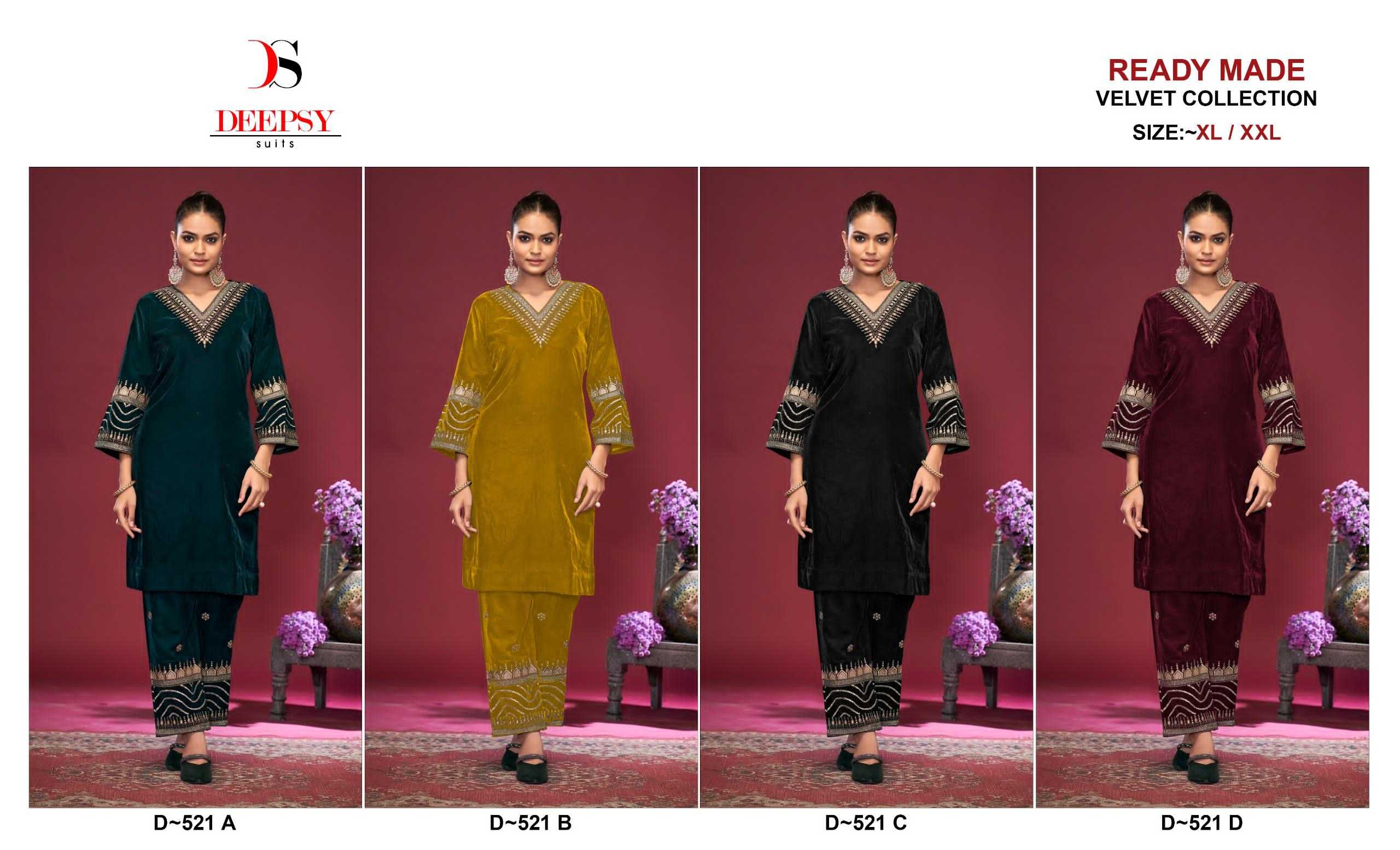d 521 by deepsy suits embroidery winter special velvet readymade kurti with pant