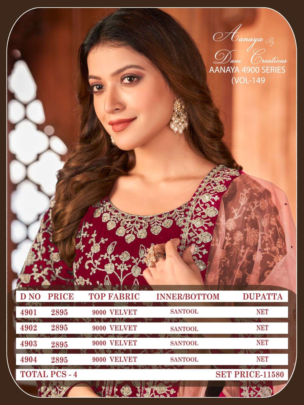 dani creation aanaya vol 149 velvet designer long anarkali winter suit