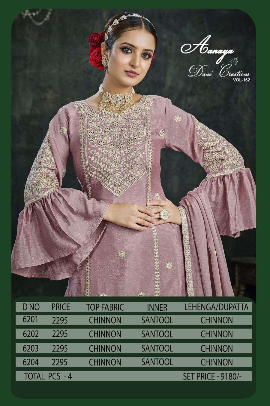 dani creation aanaya vol 162 designer heavy work unstich lehenga style salwar kameez collection