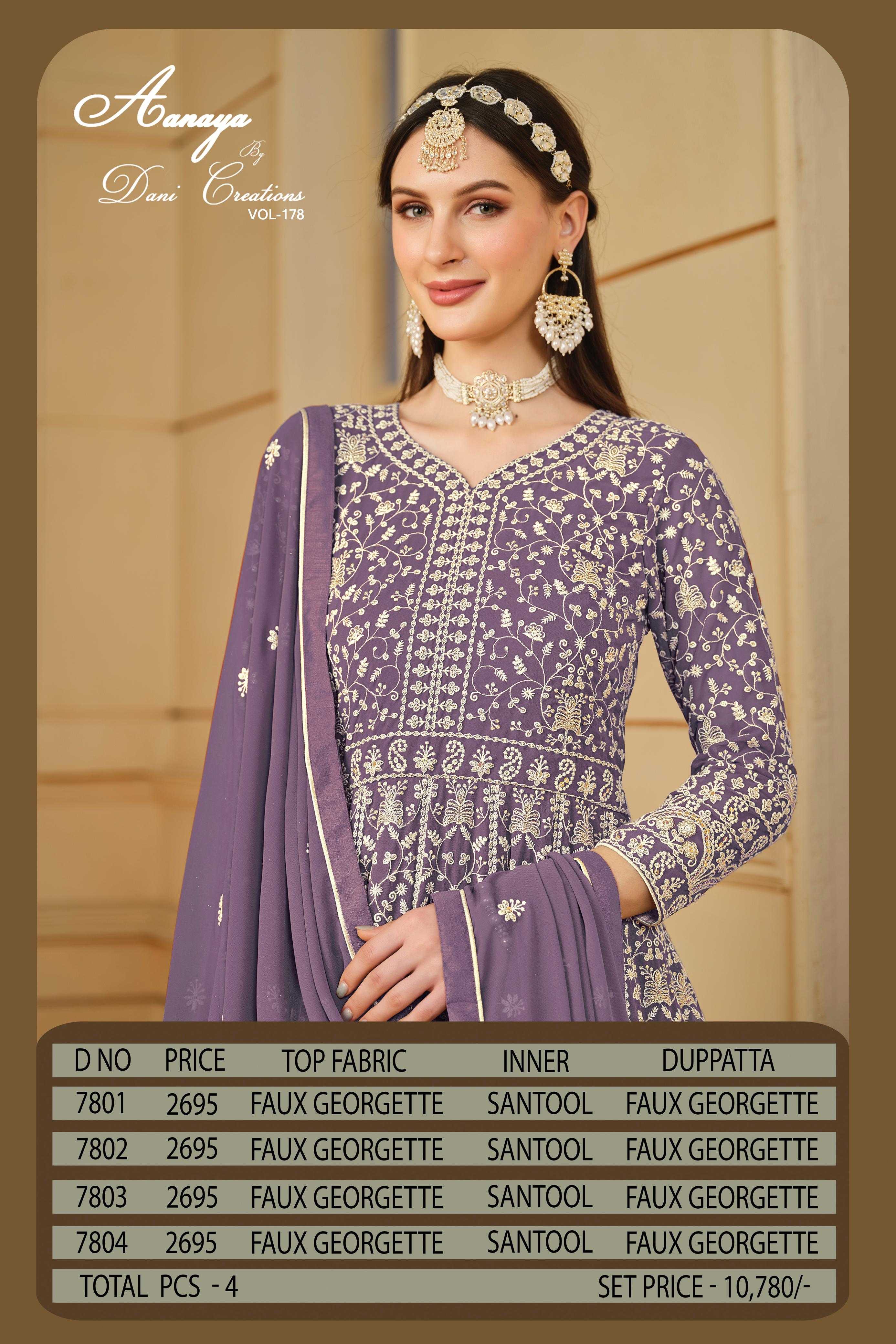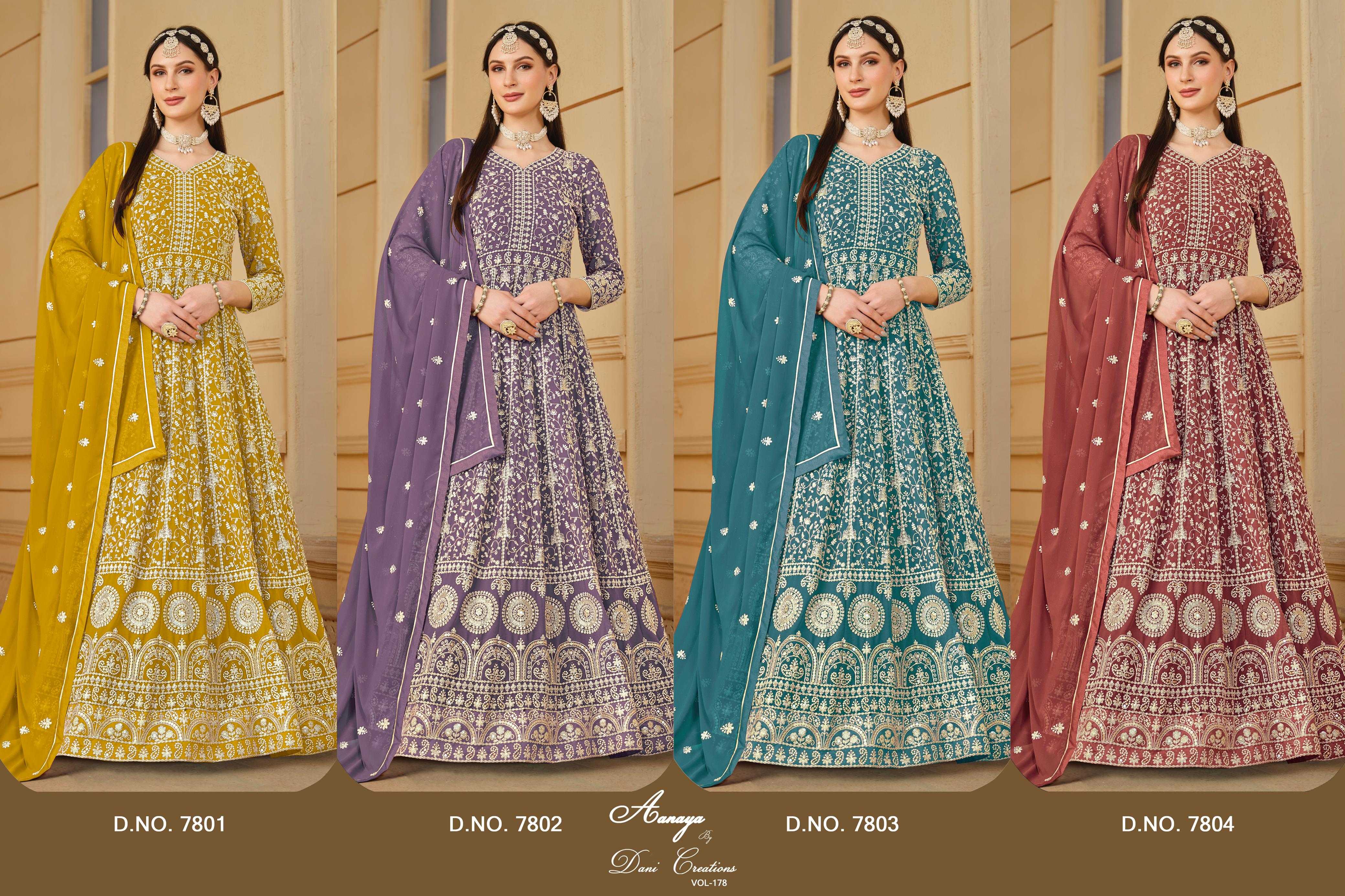 dani creation aanaya vol 178 designer unstitch long gown dupatta bottom